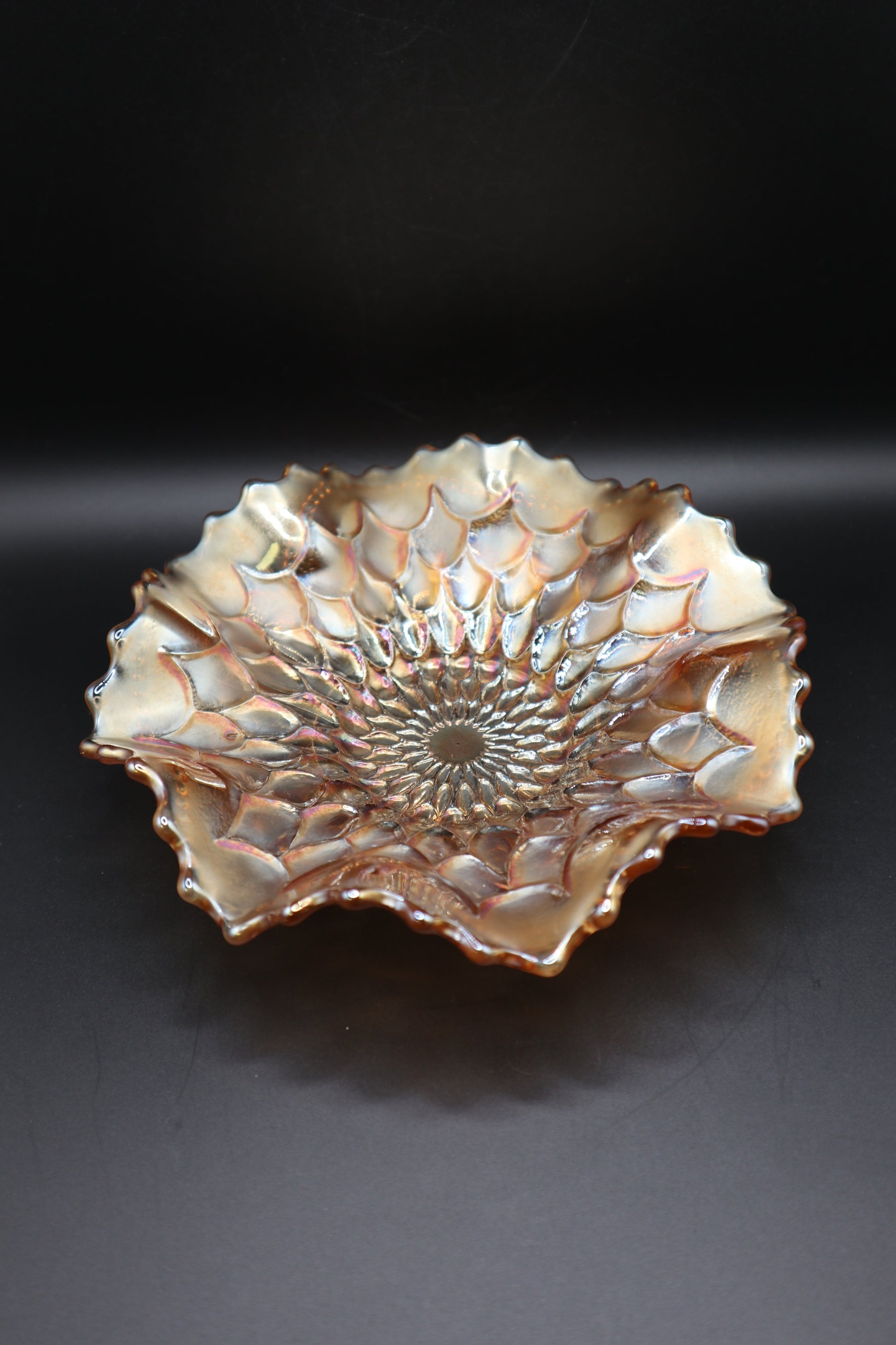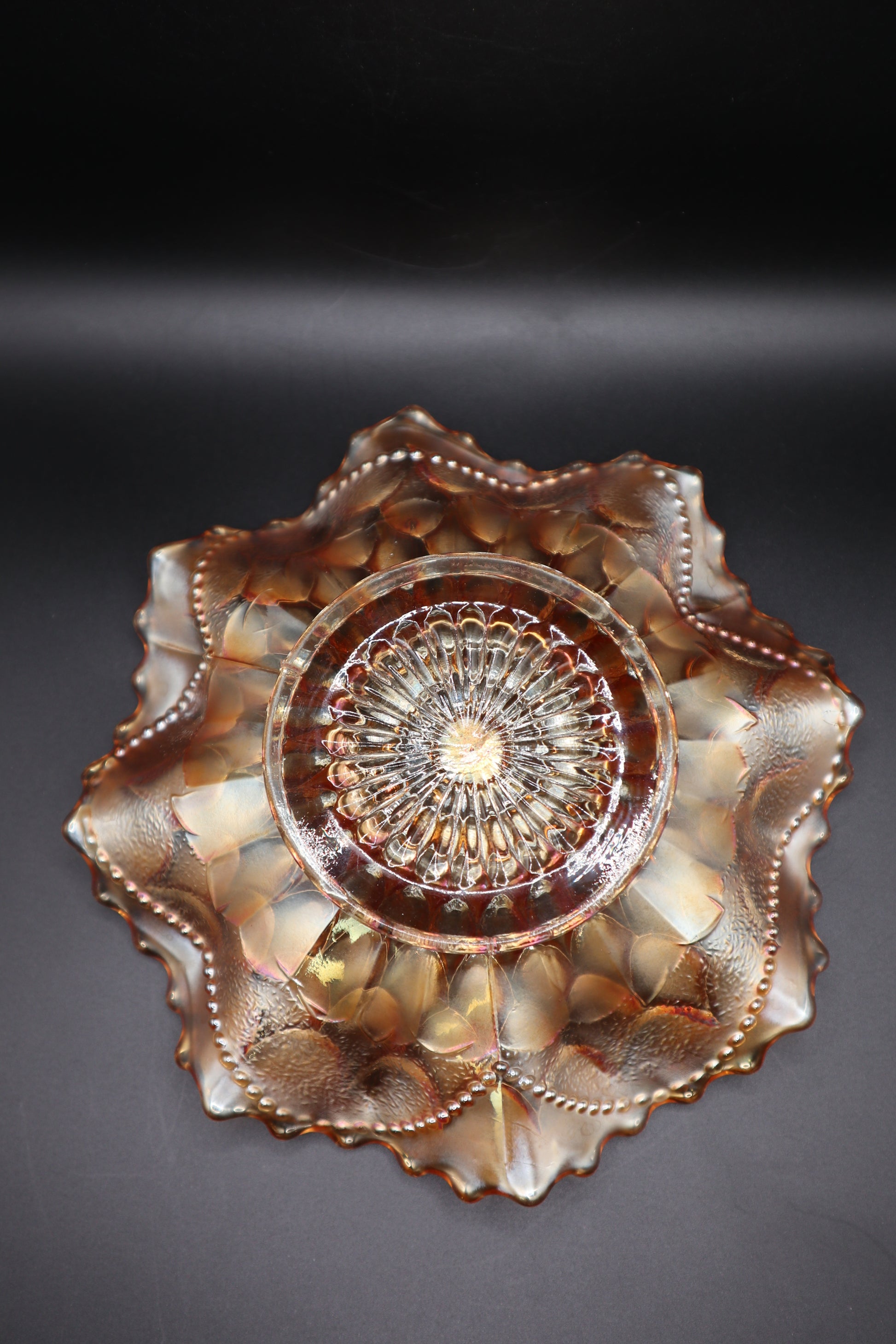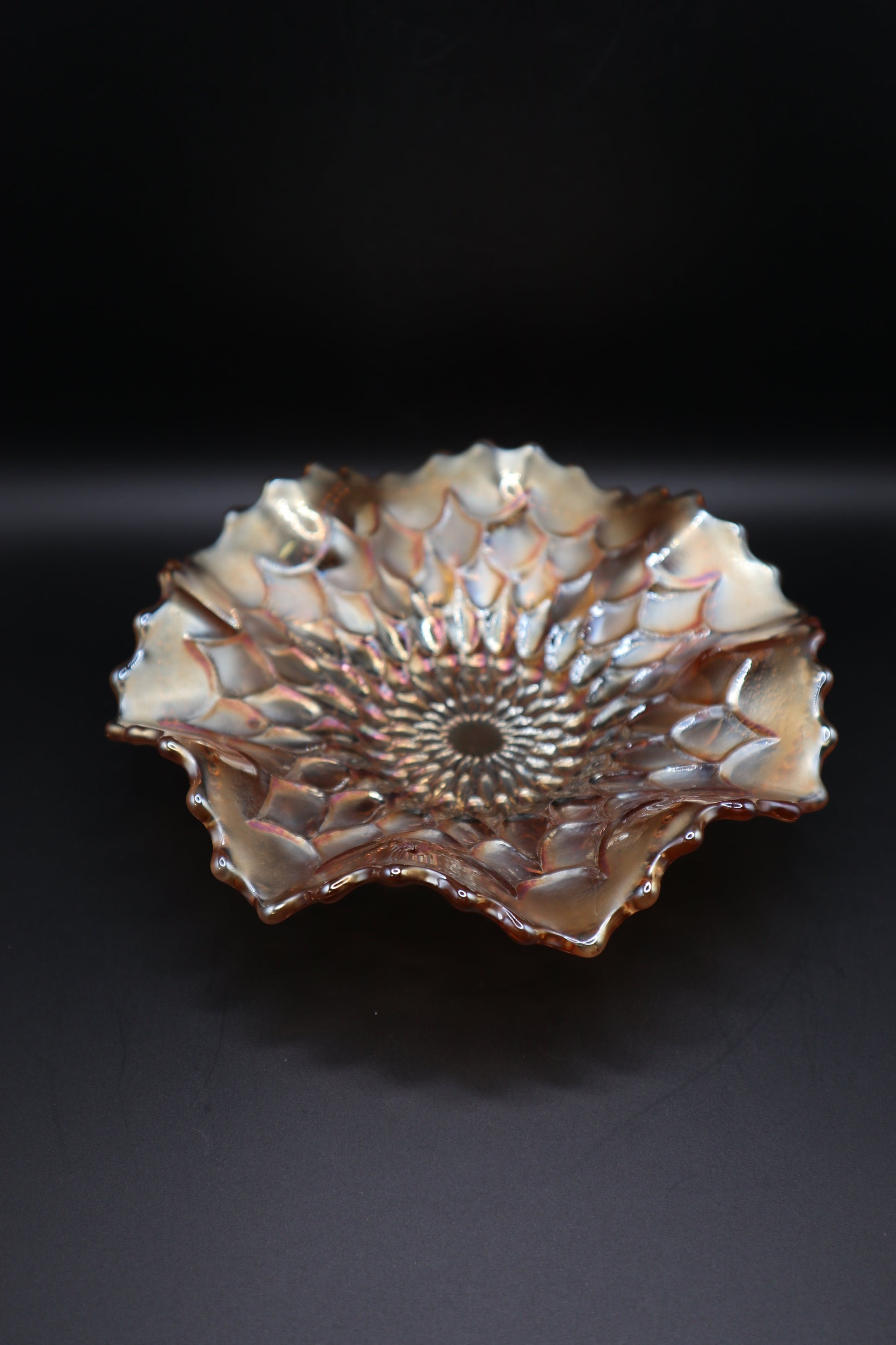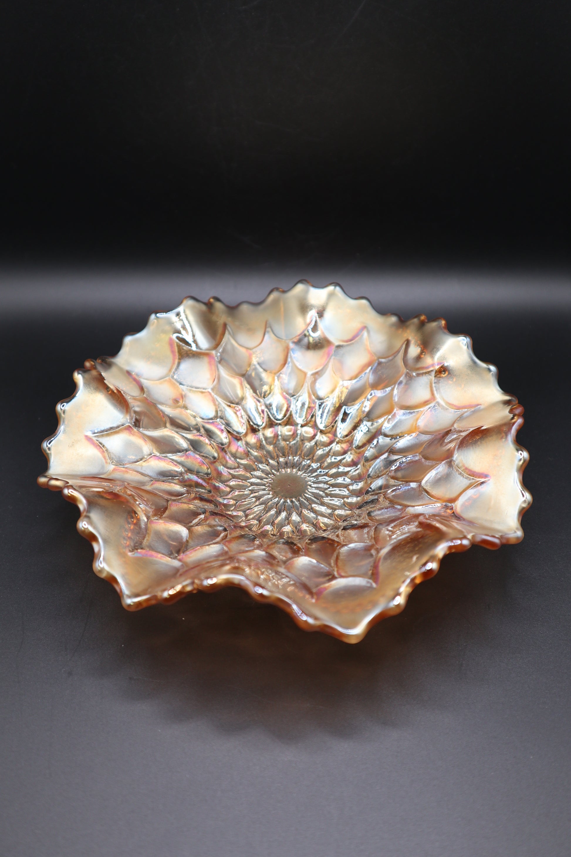 1913 CARNIVAL GLASS PEACH OPALESCENT DUGAN FISH SCALE AND BEADS PATTERN