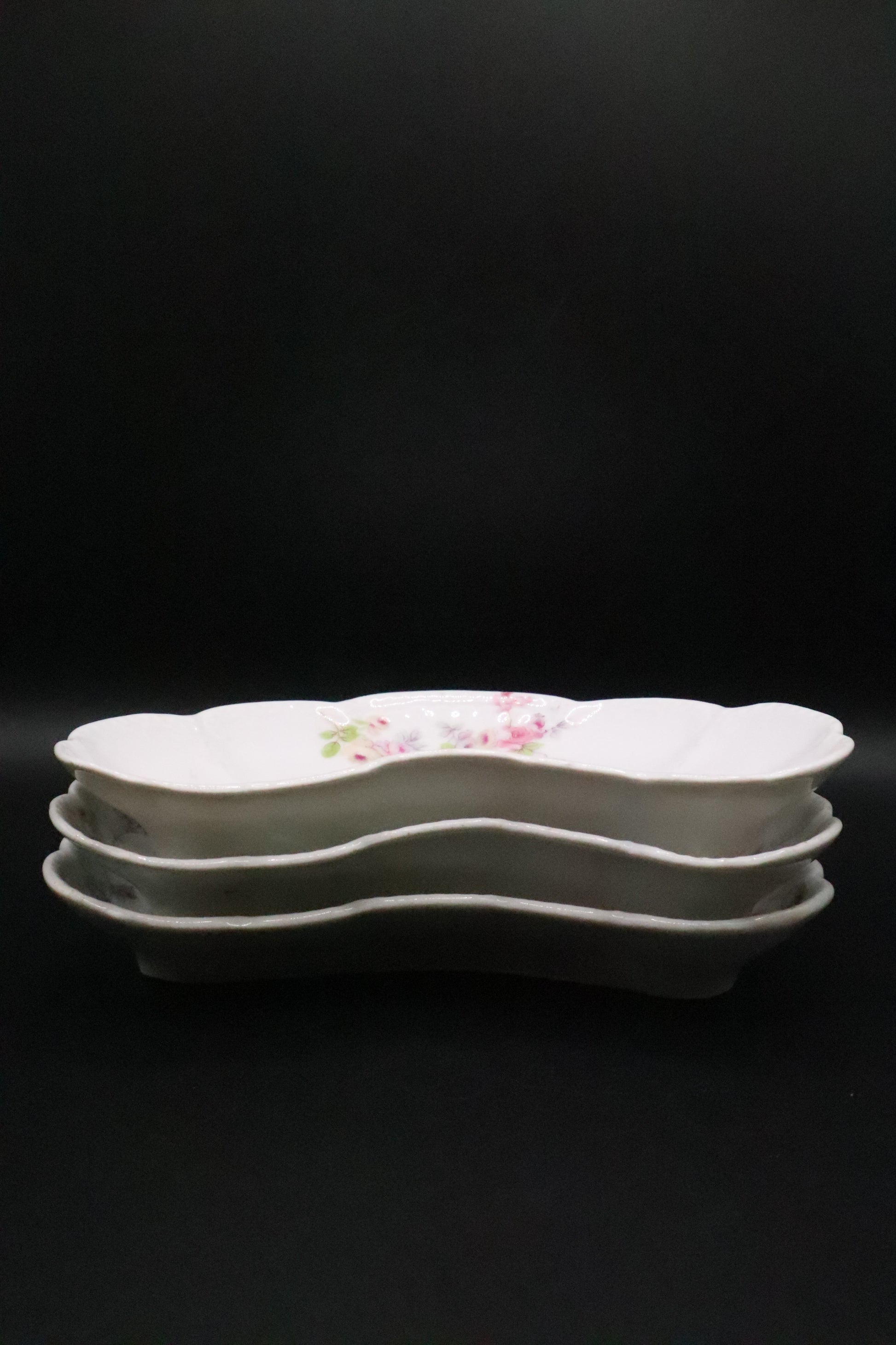 BASSETT AUSTRIA LIMOGES FLORAL BONE DISH SET OF 3