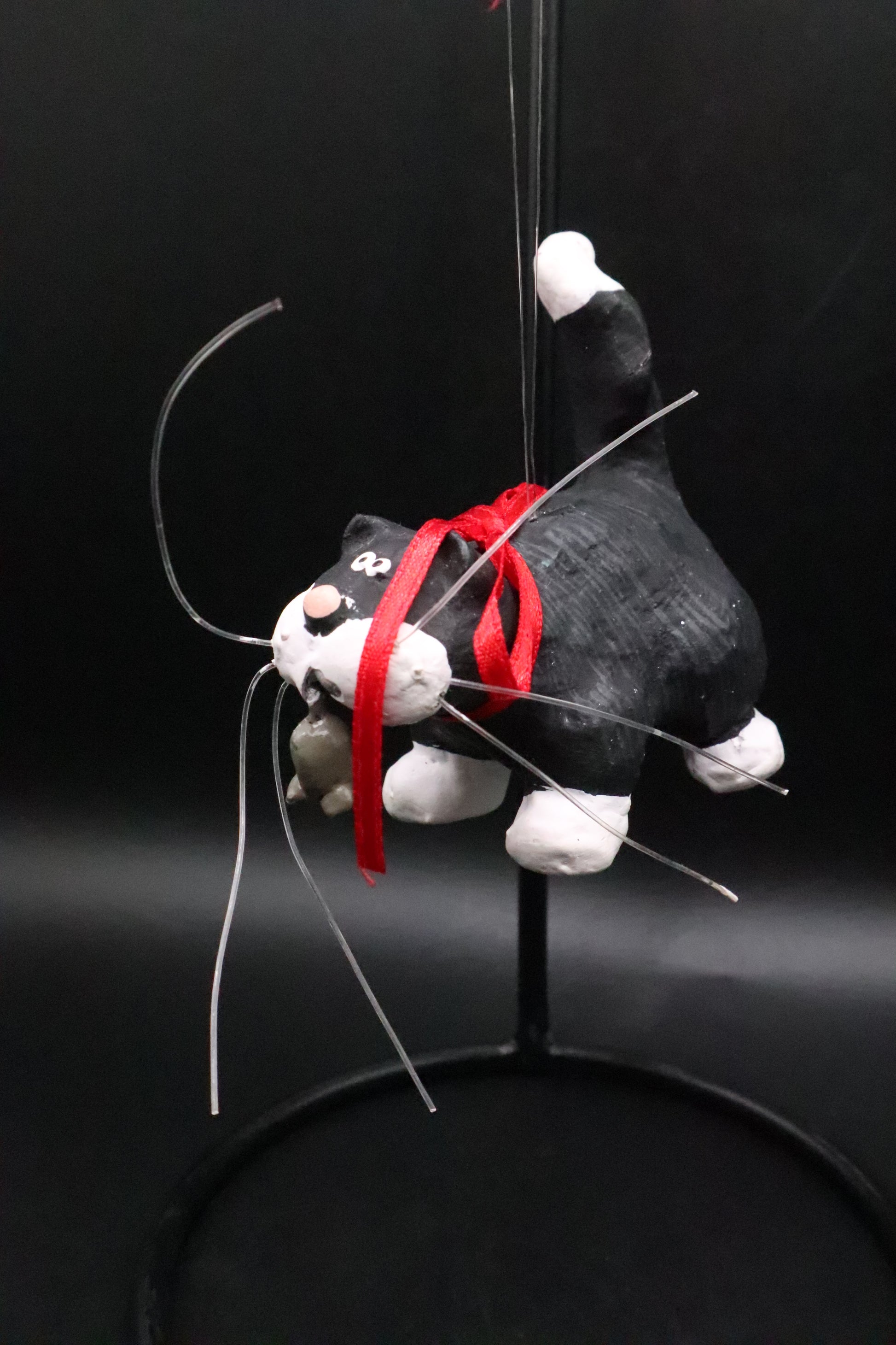 BLACK AND WHITE CAT WITH MOUSE ORNAMENT