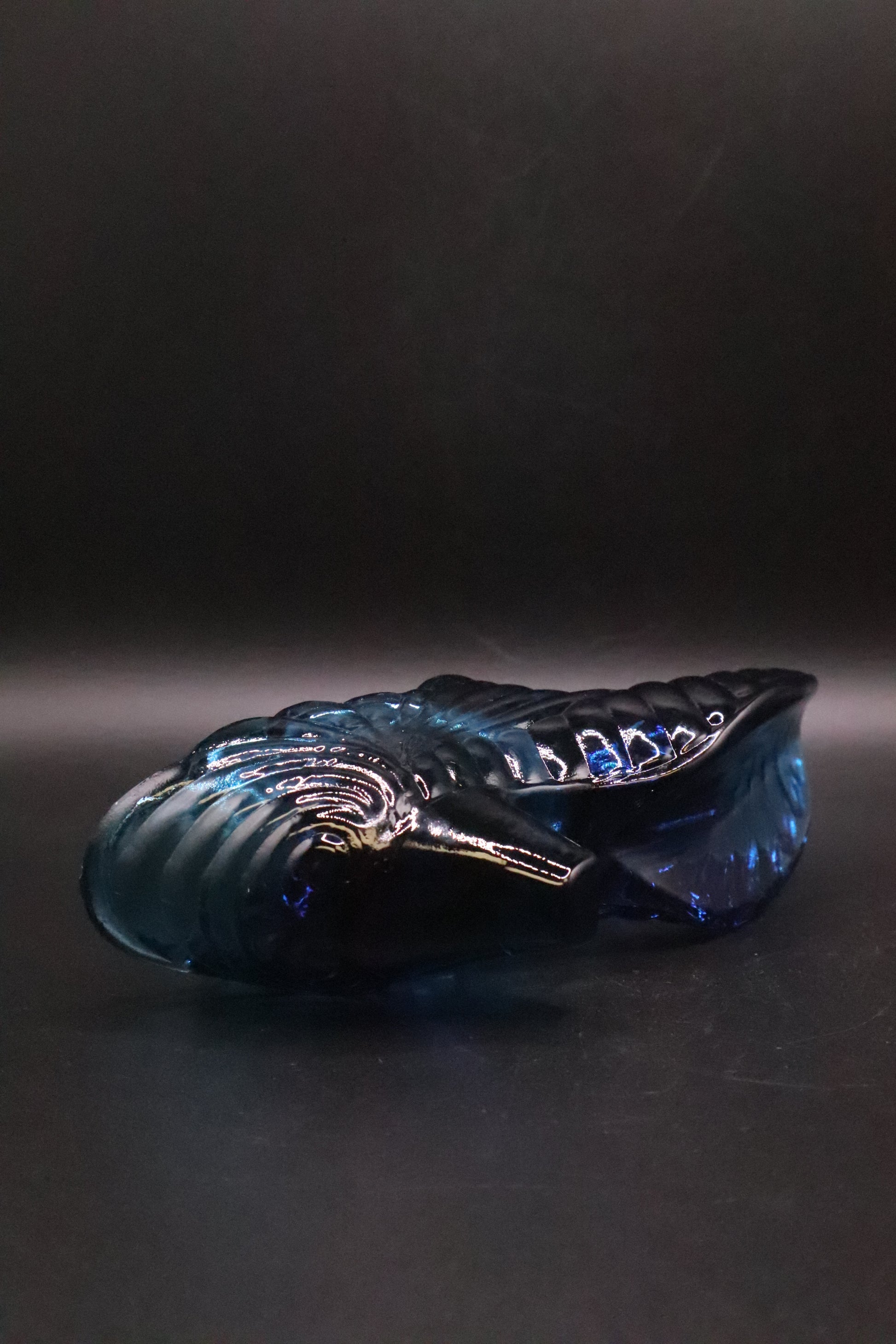 FENTON 1990's COBALT GLASS CATS HEAD SLIPPER