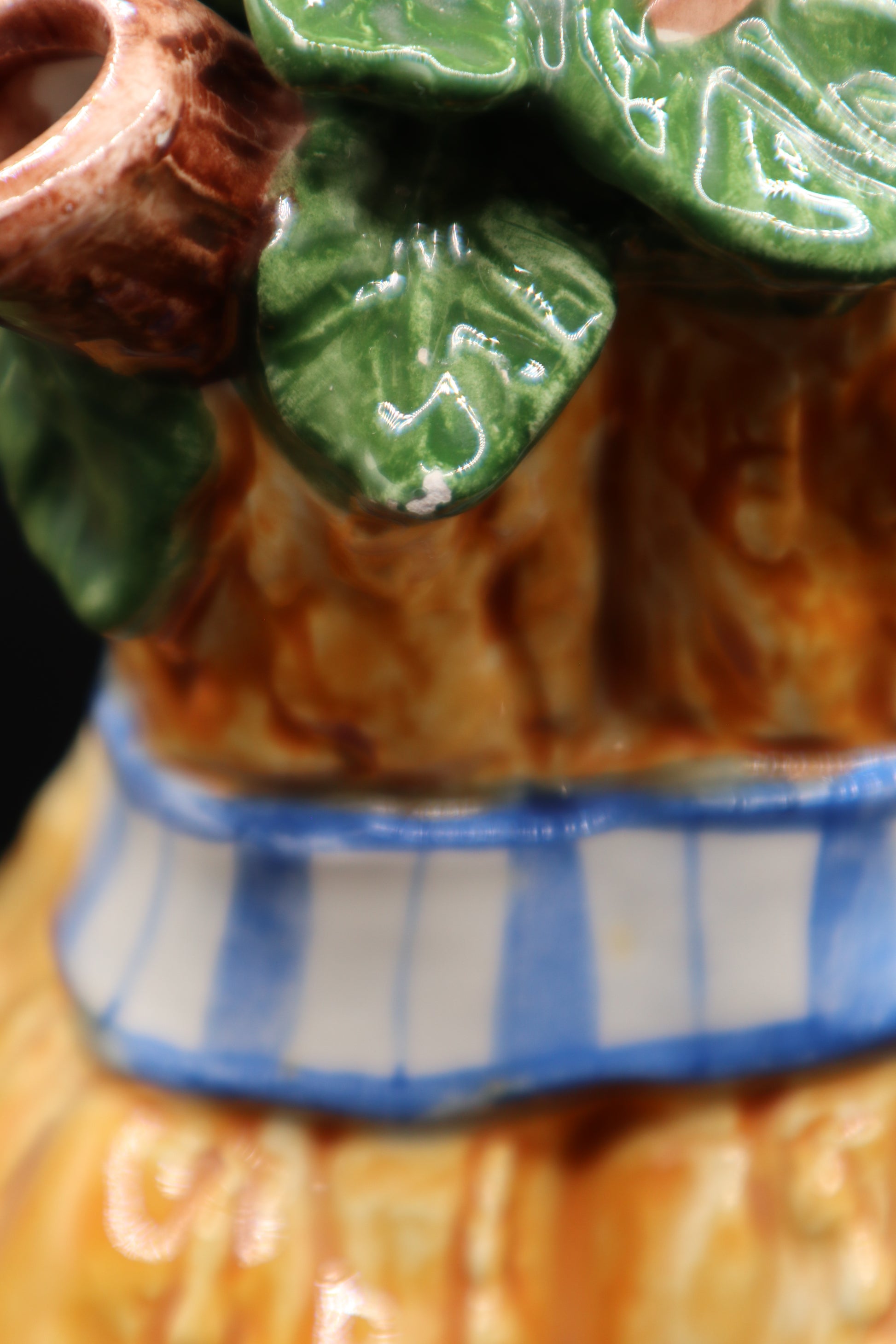 The Fitz and Floyd 1995 Harvest Pitcher showcases the brand's signature craftsmanship and timeless design, reflecting autumnal themes with detailed hand-painted accents. Though this piece bears some chips, it remains a valuable collectible for enthusiasts of vintage ceramics, offering both decorative charm and historical appeal to seasoned collectors.