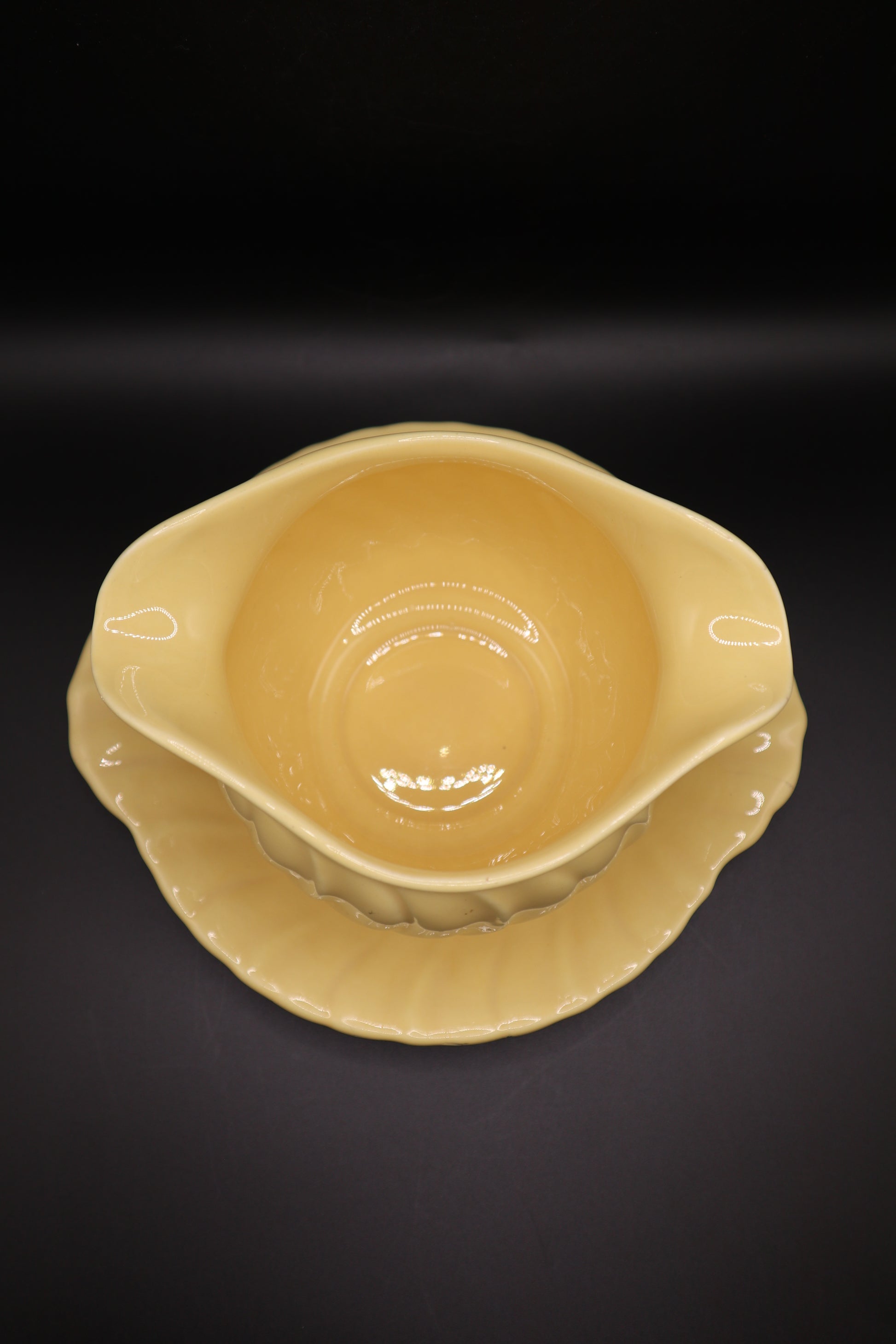 FRANCISCAN CORONADO GLOSSY YELLOW GRAY BOWL WITH ATTACHED UNDER PLATE