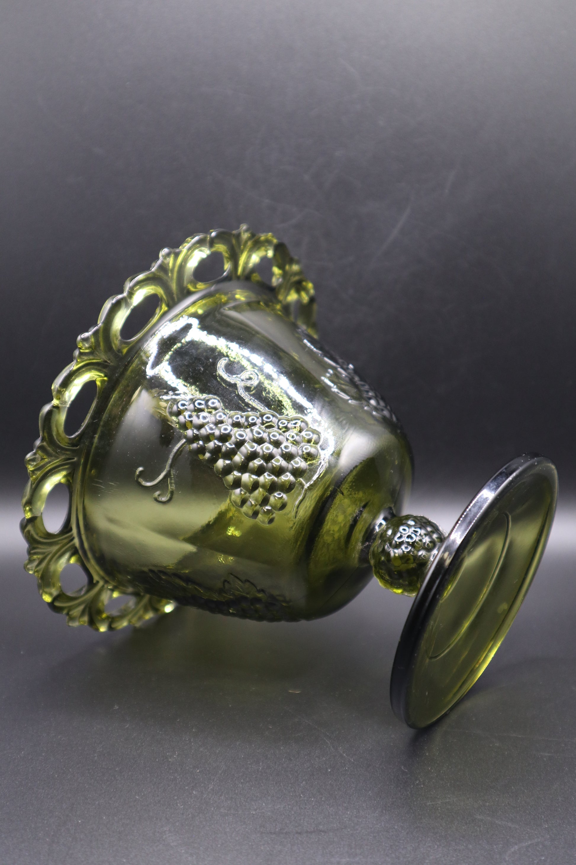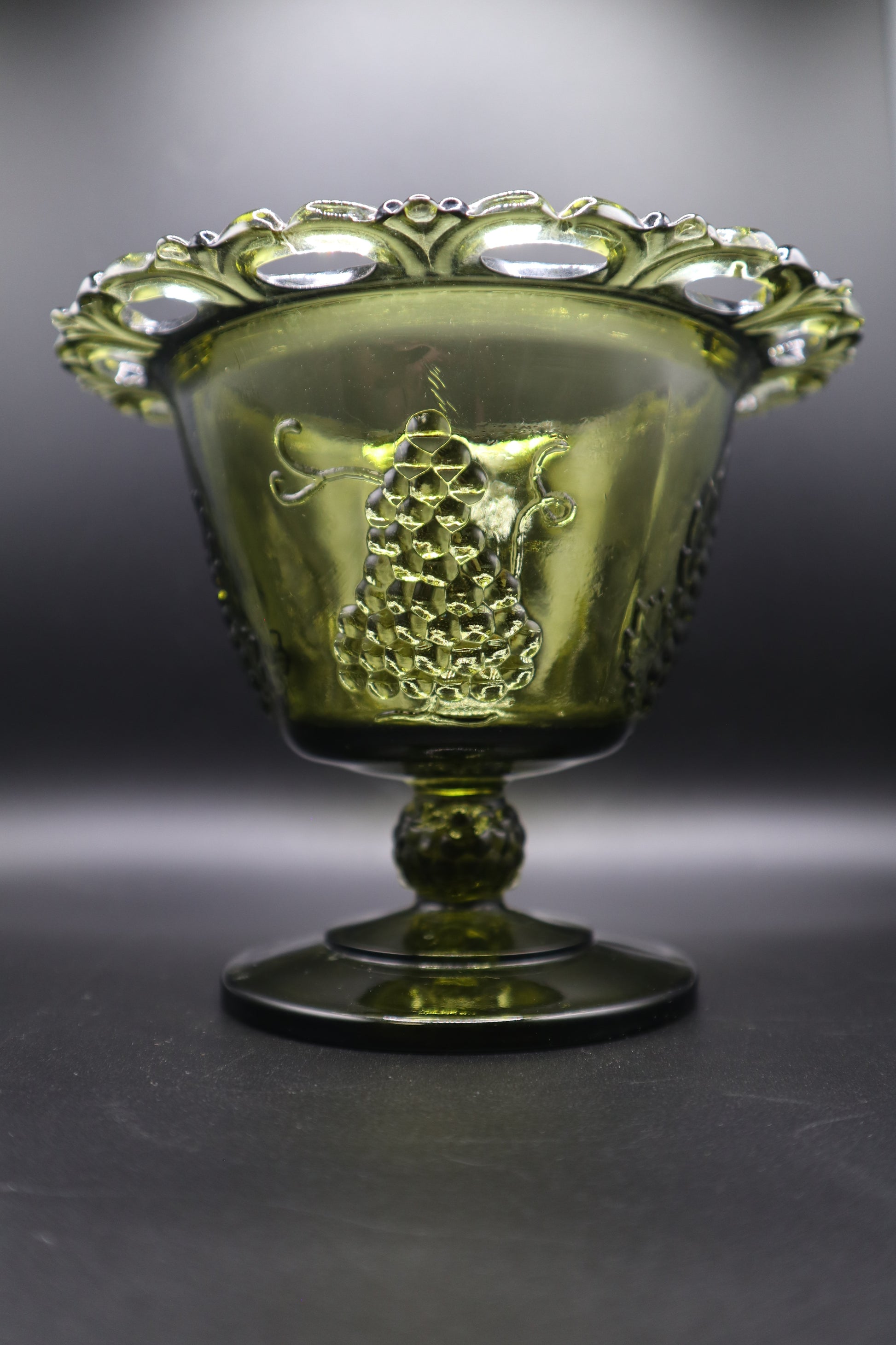 INDIANA GLASS COLONY HARVEST GREEN COMPOTE BOWL PEDESTAL