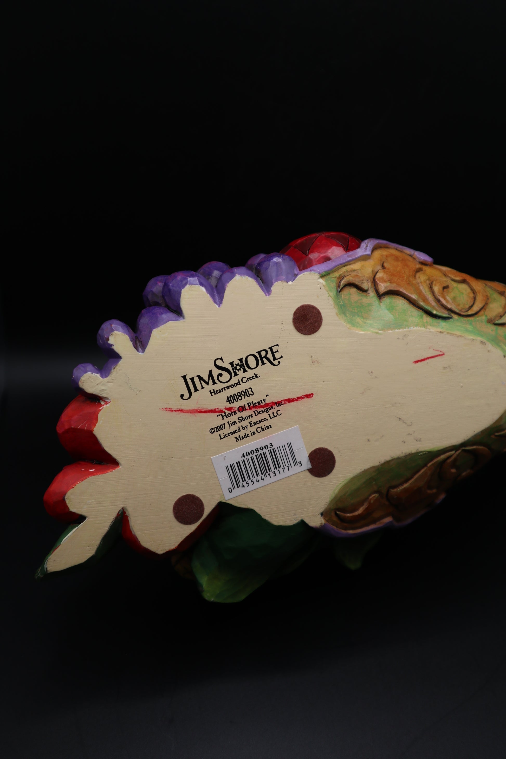 Celebrate the spirit of Thanksgiving with the Jim Shore "Horn of Plenty" Harvest Cornucopia Centerpiece. Expertly crafted, this centerpiece combines traditional folk art charm with intricate detailing, showcasing a bountiful arrangement of seasonal harvest elements. Perfect for enhancing your holiday décor, it brings warmth and elegance to your table while symbolizing abundance and gratitude. Durable and beautifully hand-painted, it is both a festive decoration and a collectible piece to enjoy year after year.