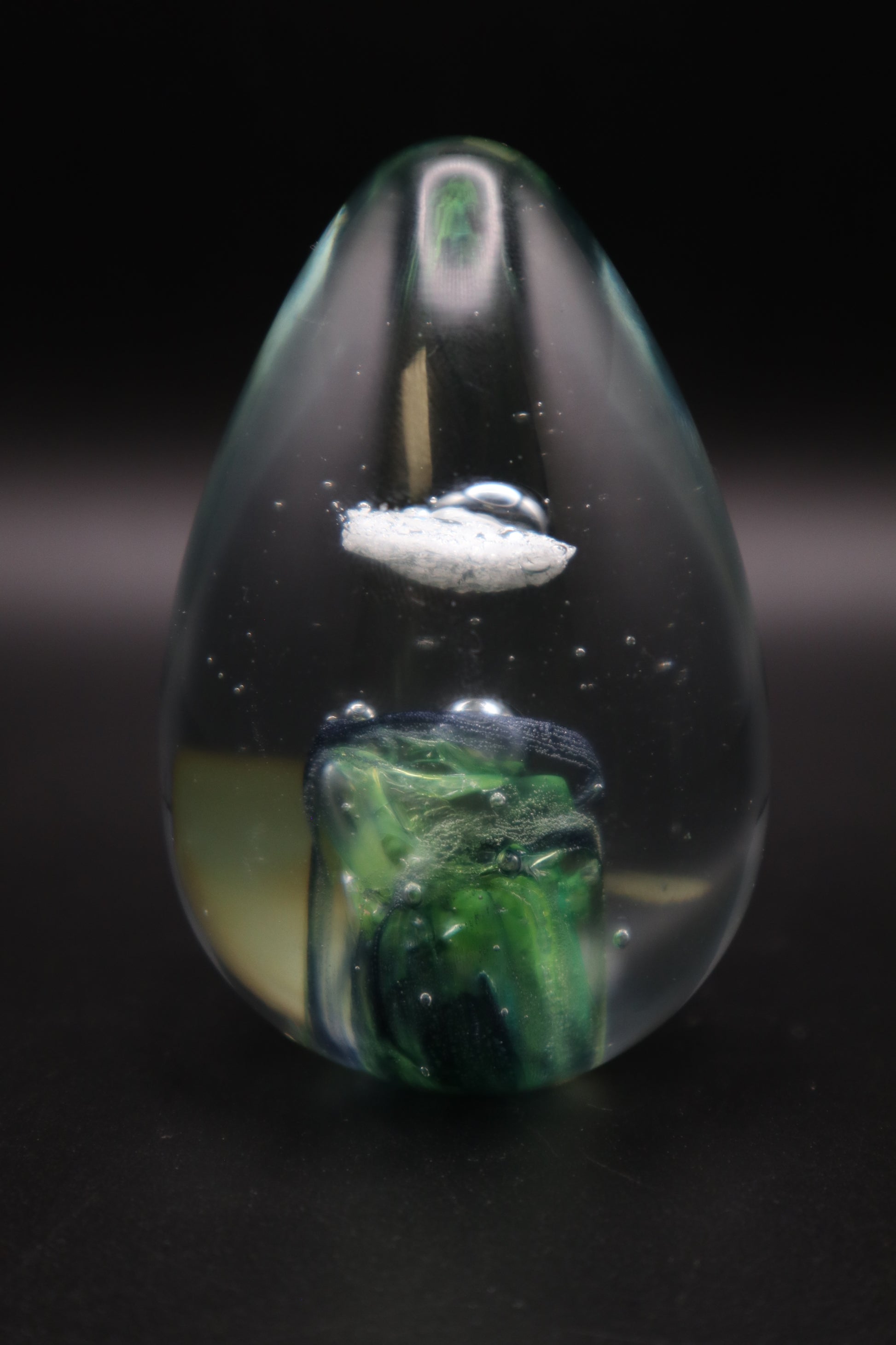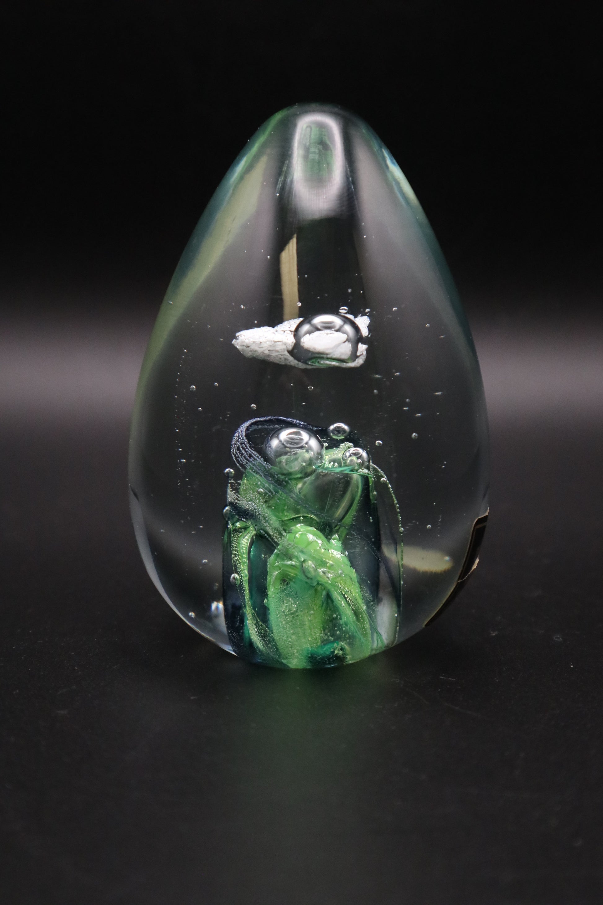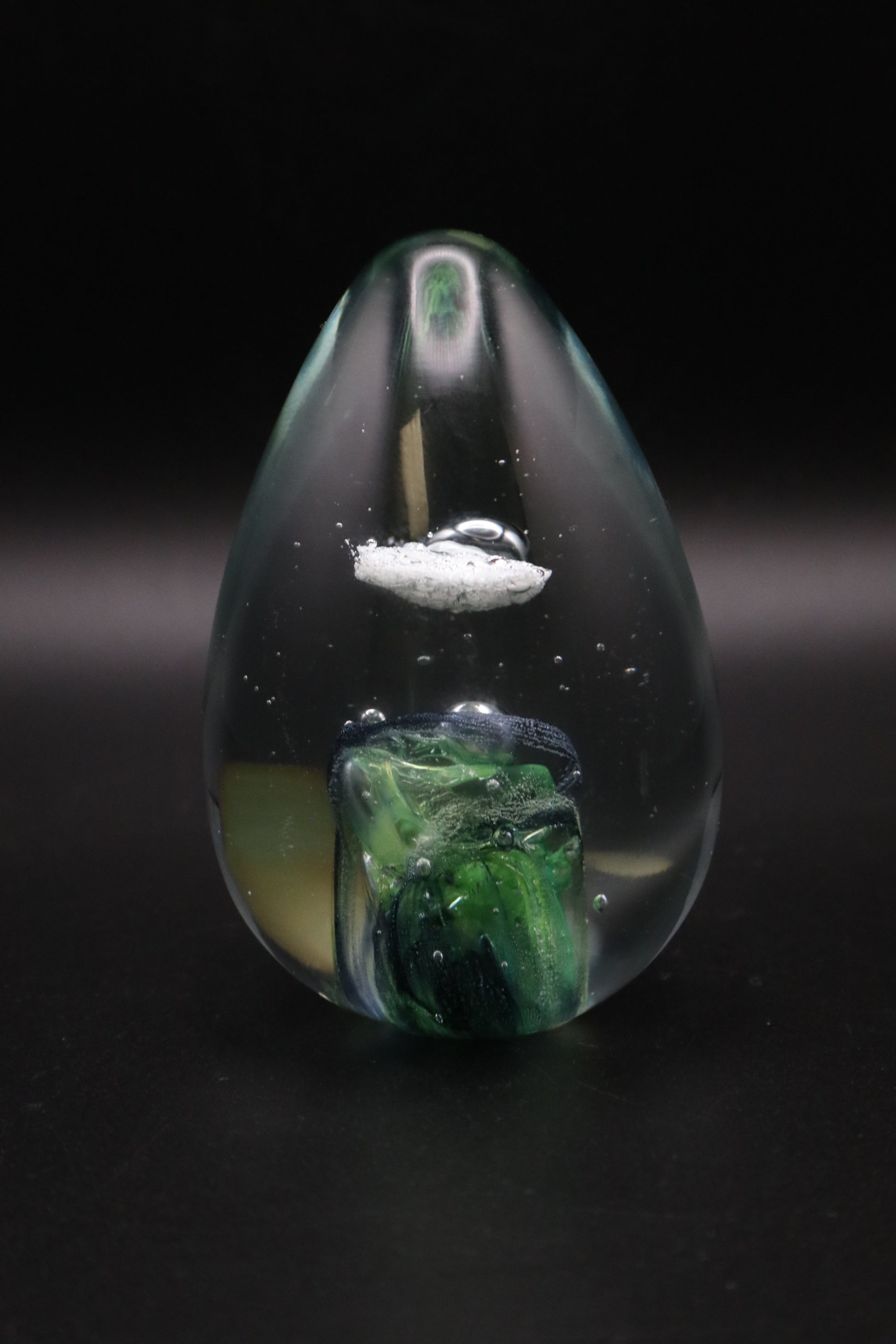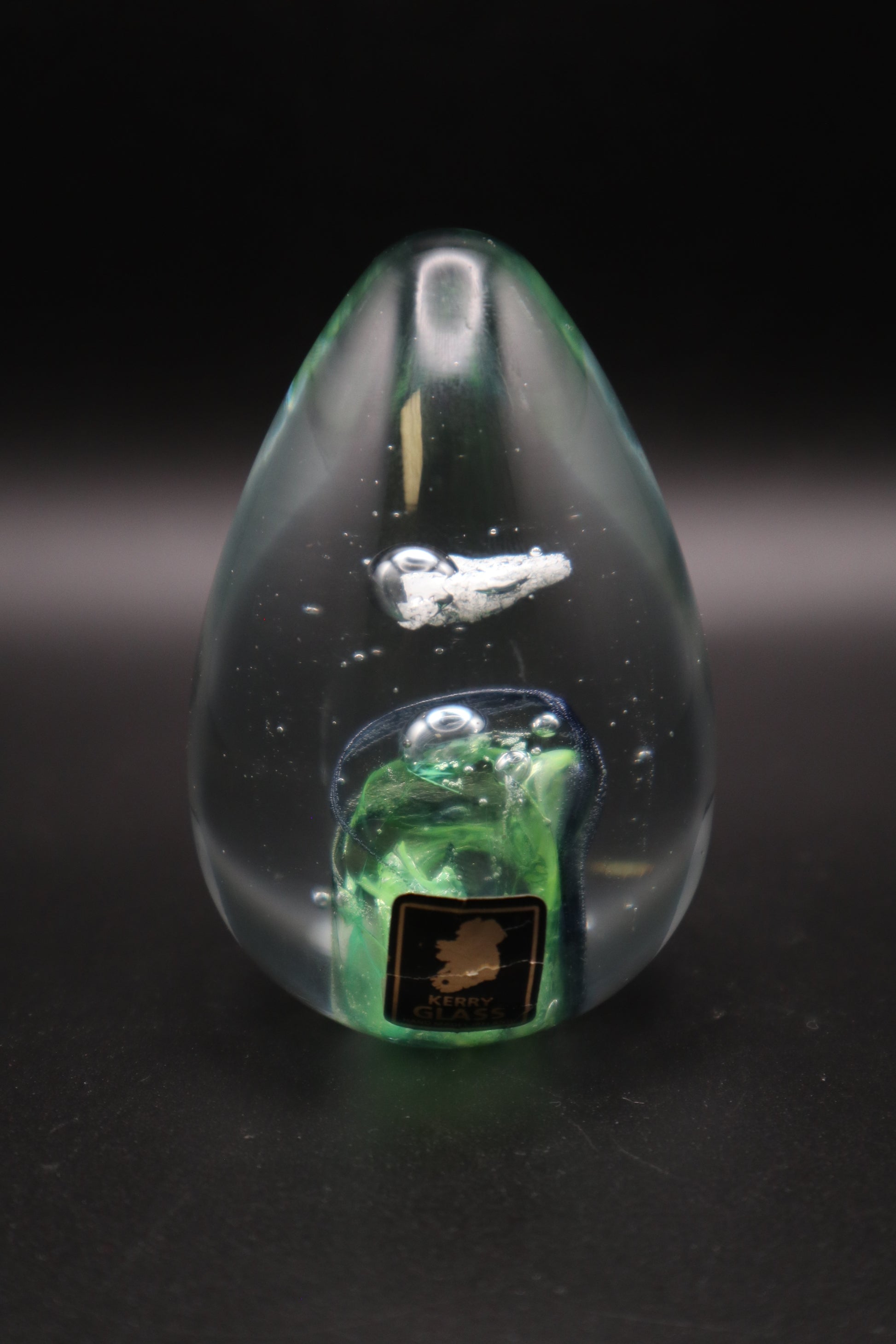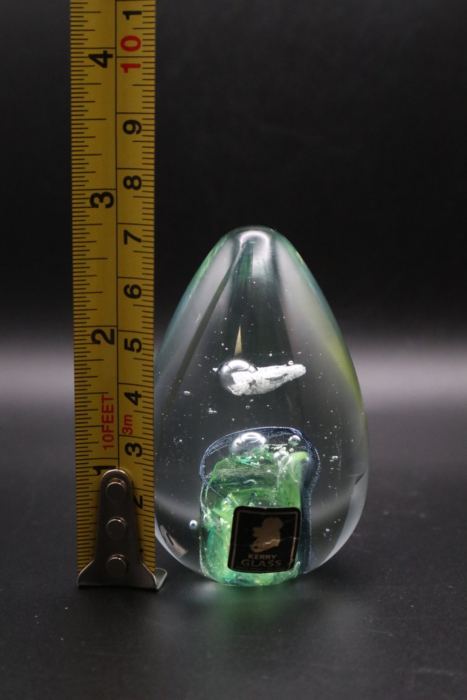KERRY ART GLASS GREEN TO CLEAR HAND BLOWN MADE IN IRELAND PAPERWEIGHT