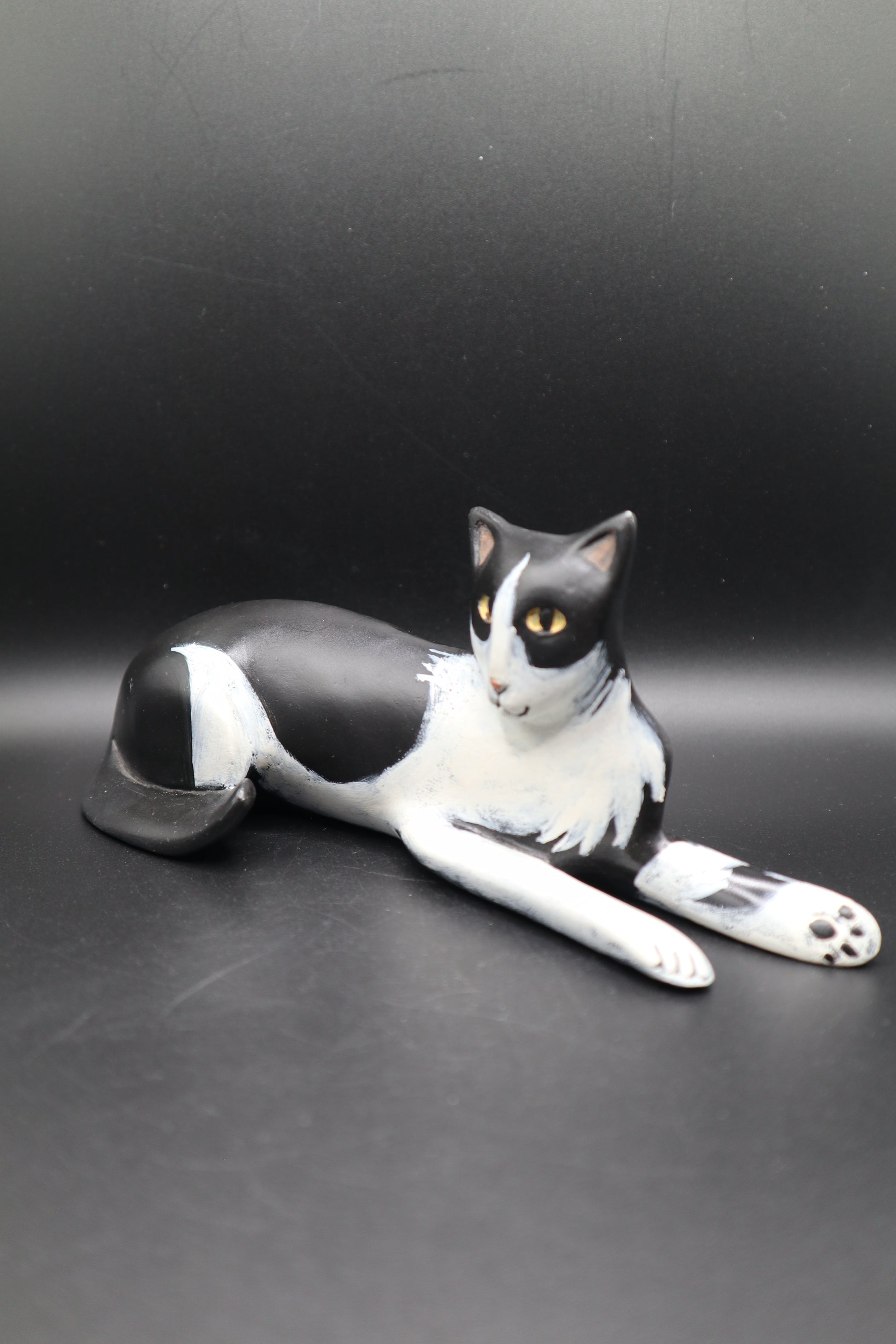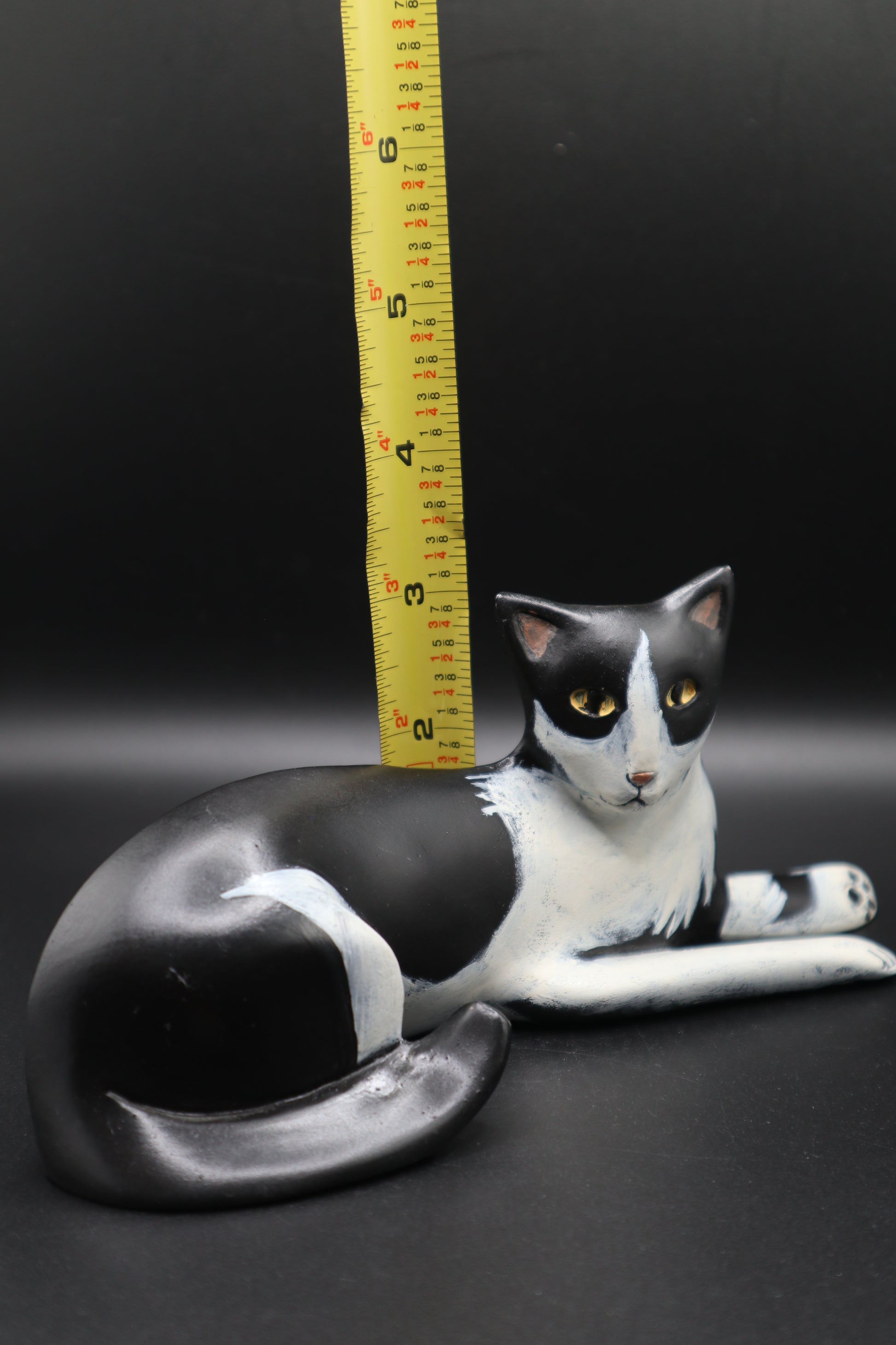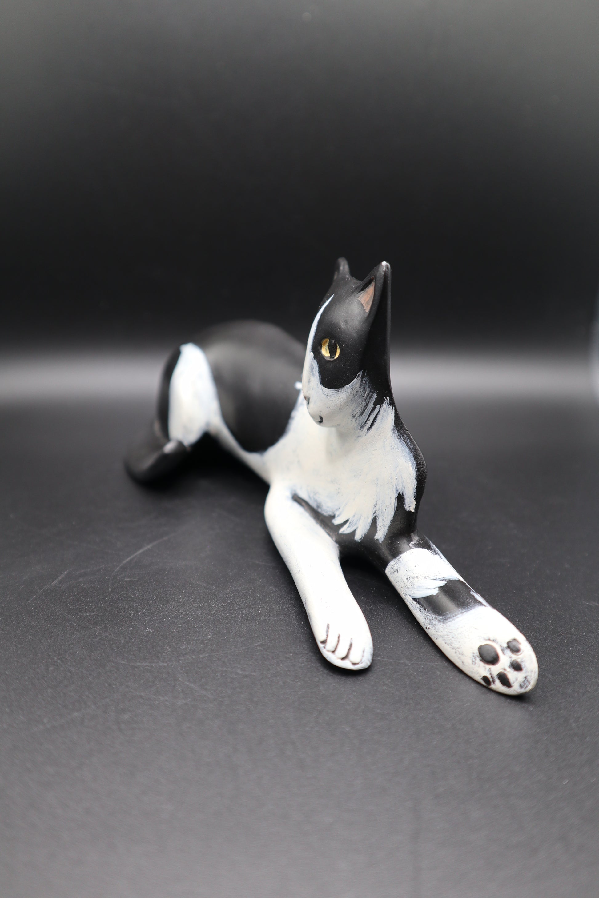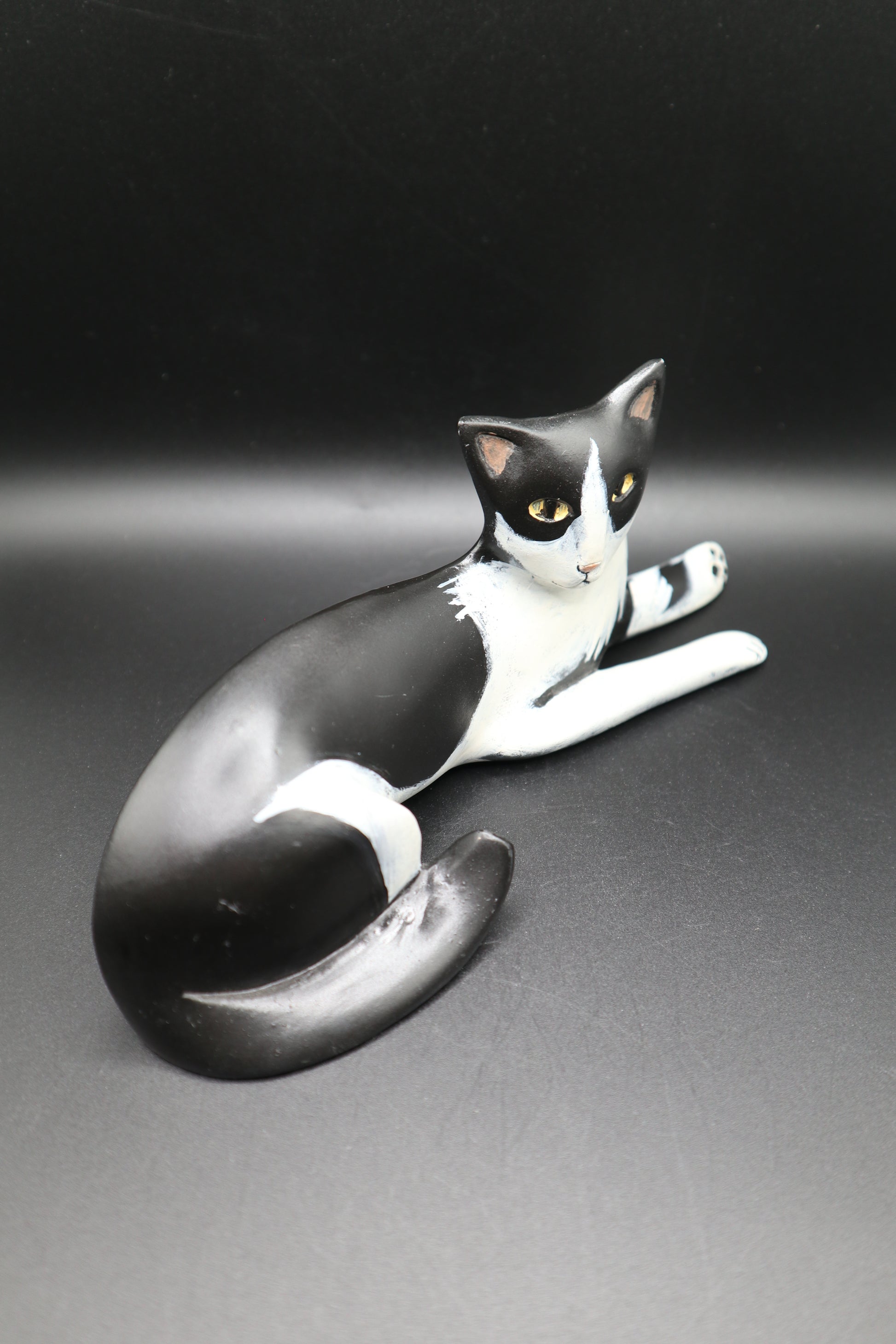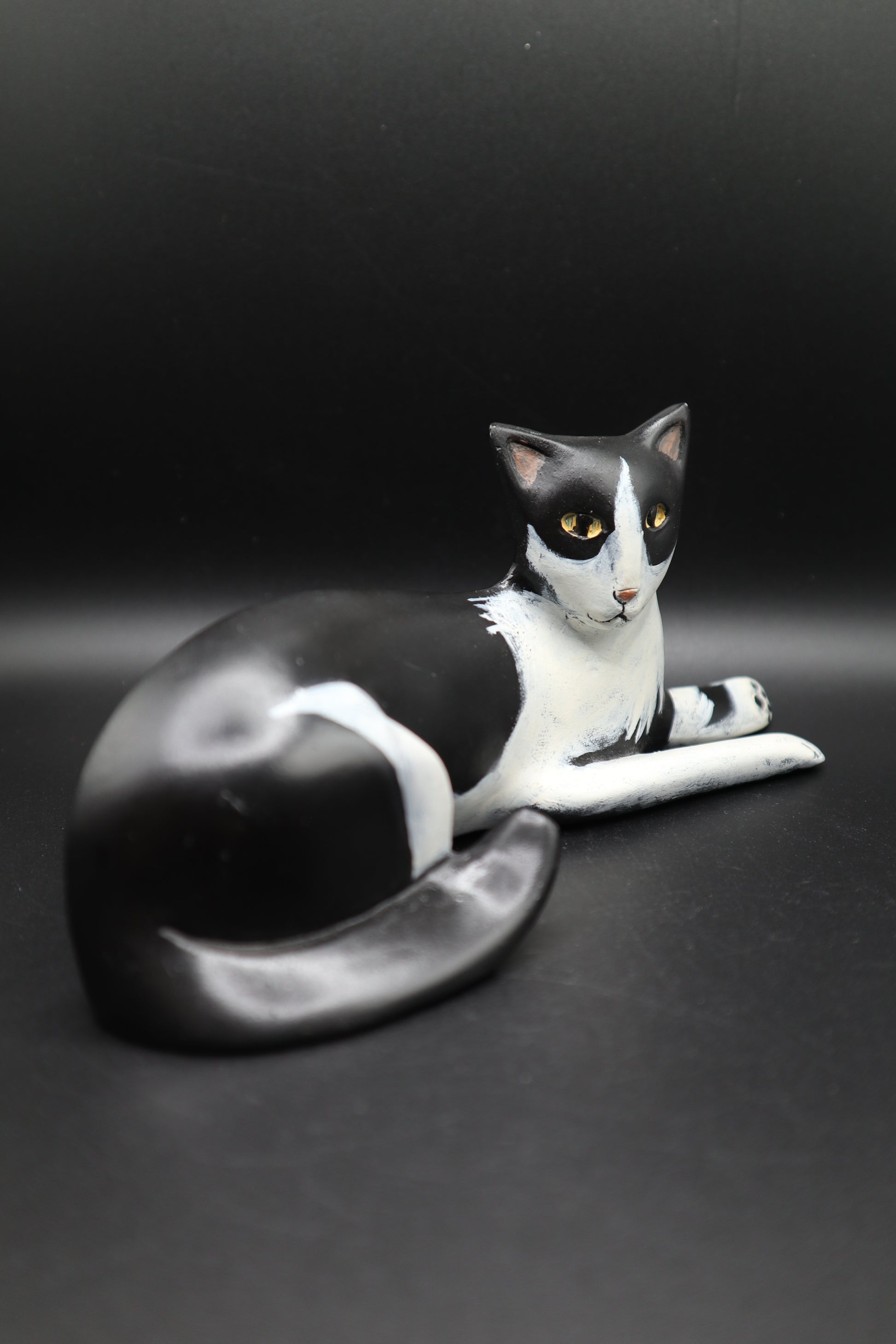 This Lynda Pleet White and Black Cat sculpture showcases a refined blend of artistic craftsmanship and charm. Its contrasting colors highlight the graceful silhouette and delicate details, making it an elegant addition to any collection. Perfect for collectors or as a sophisticated decorative accent, this piece captures both personality and style in a timeless feline form.