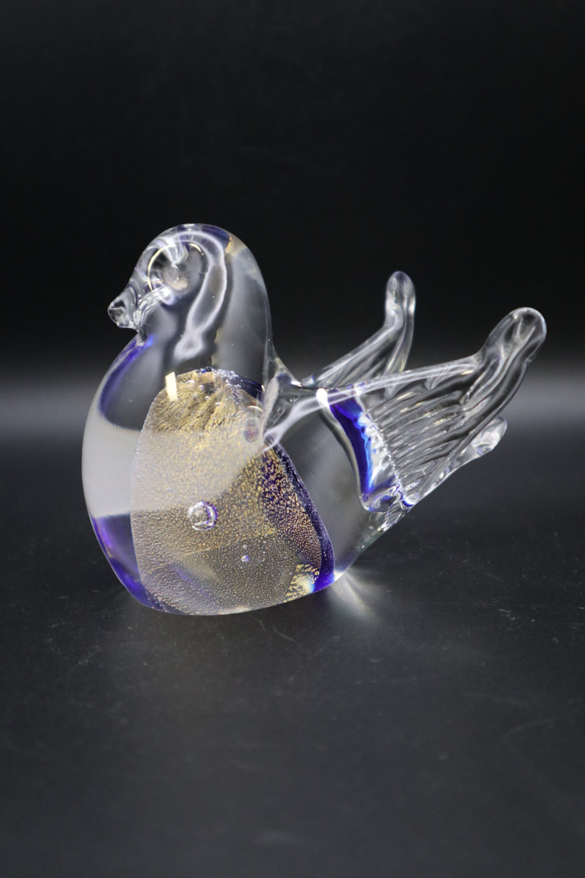 MURANO BLUE/GOLD BIRD PAPERWEIGHT