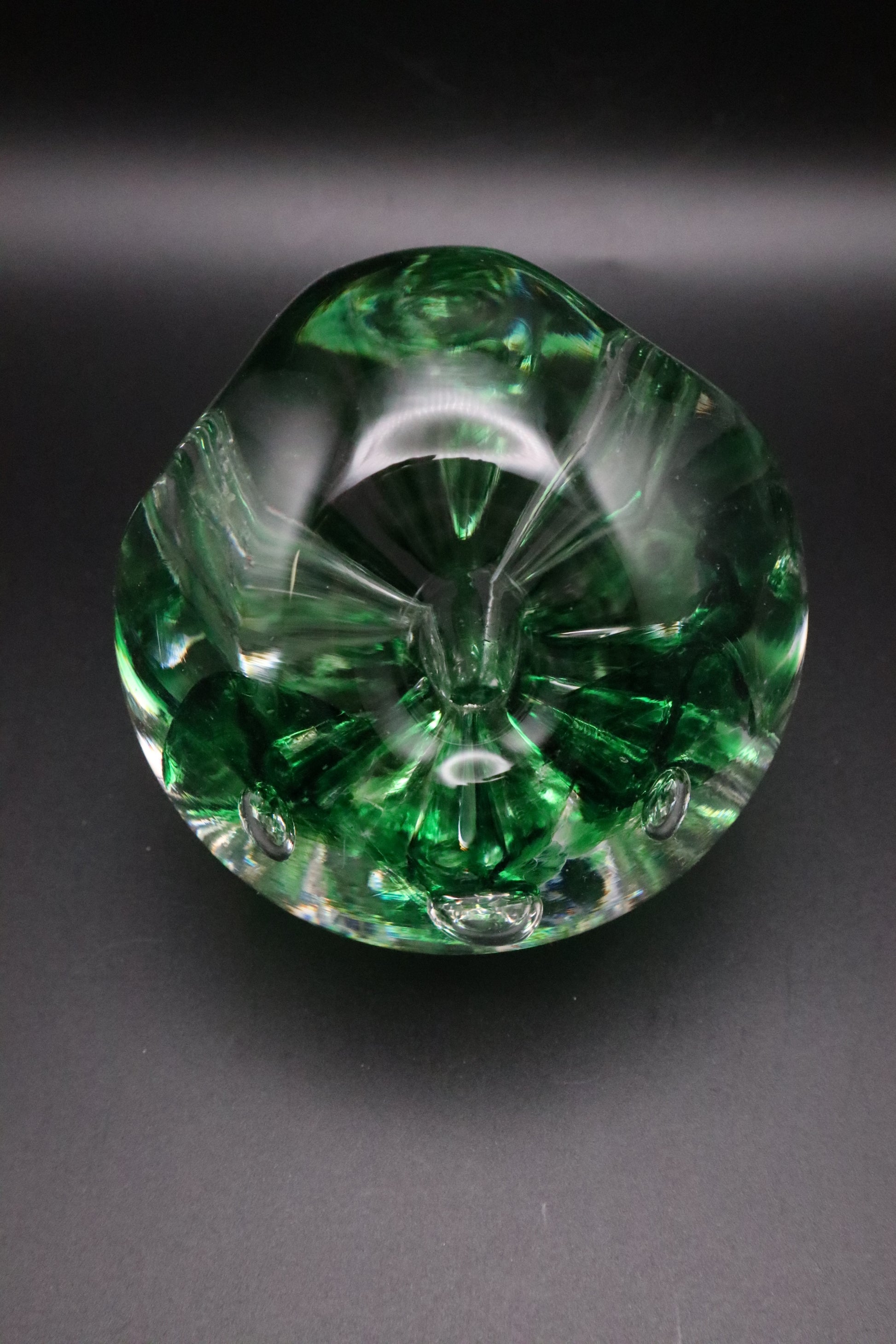 SIGNED JOE ZIMMERMAN GREEN ART GLASS PAPERWEIGHT