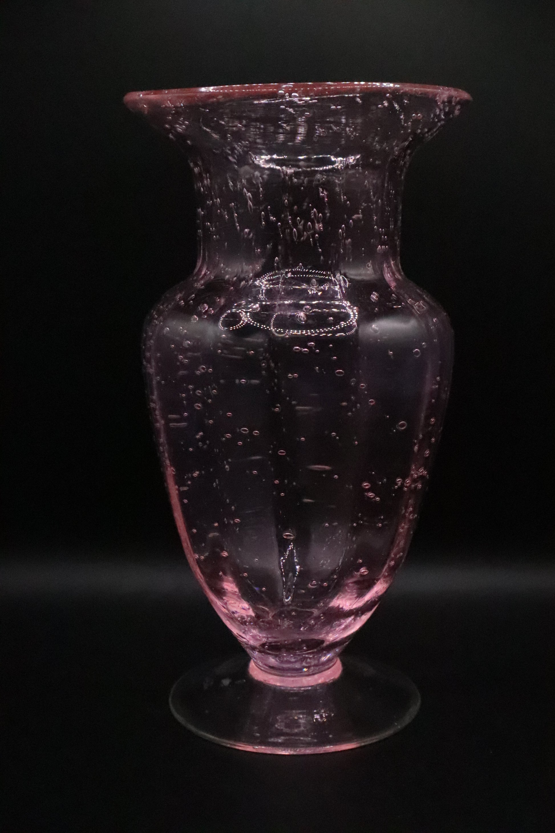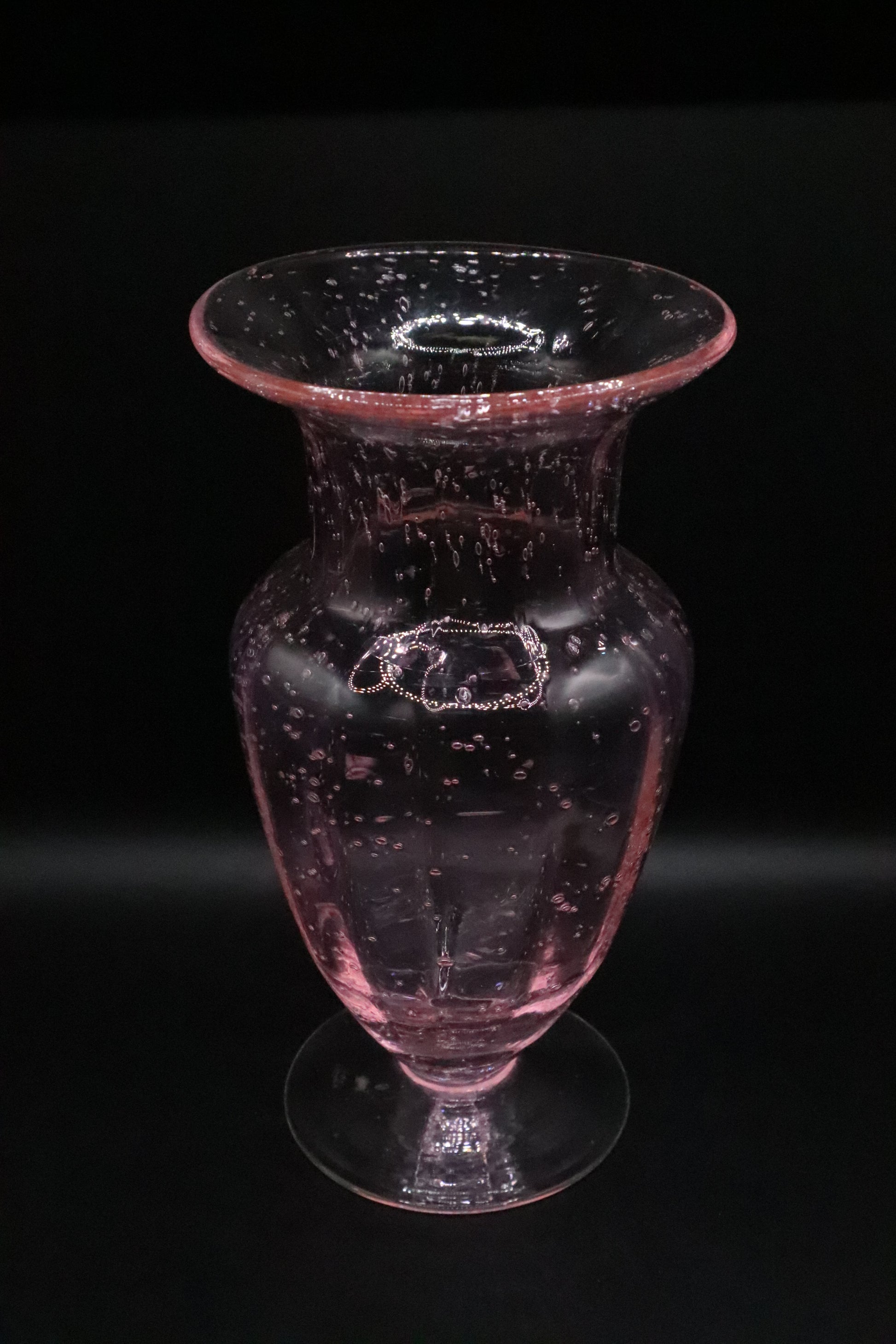 VINTAGE ART GLASS PINK BUBBLE GLASS VASE