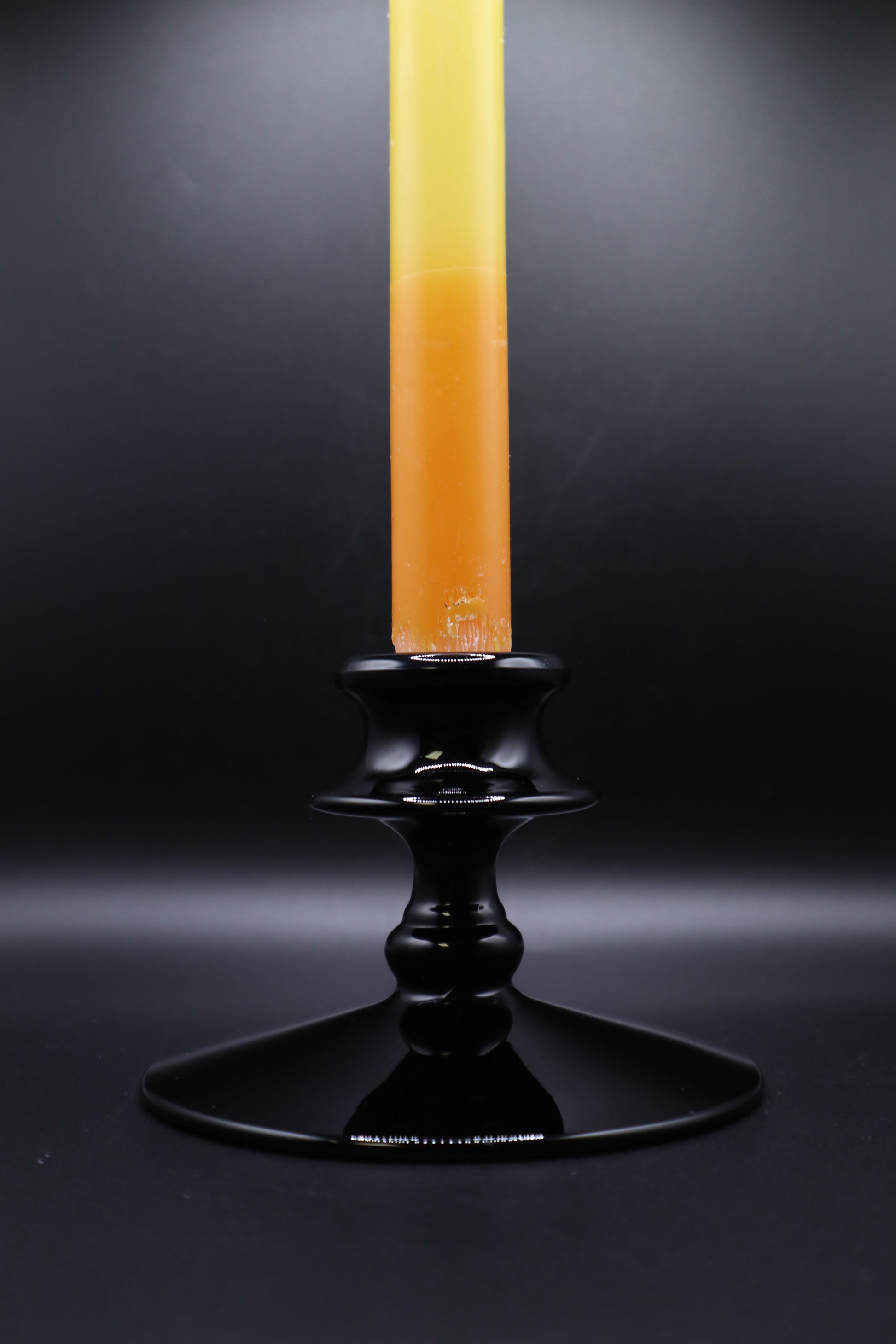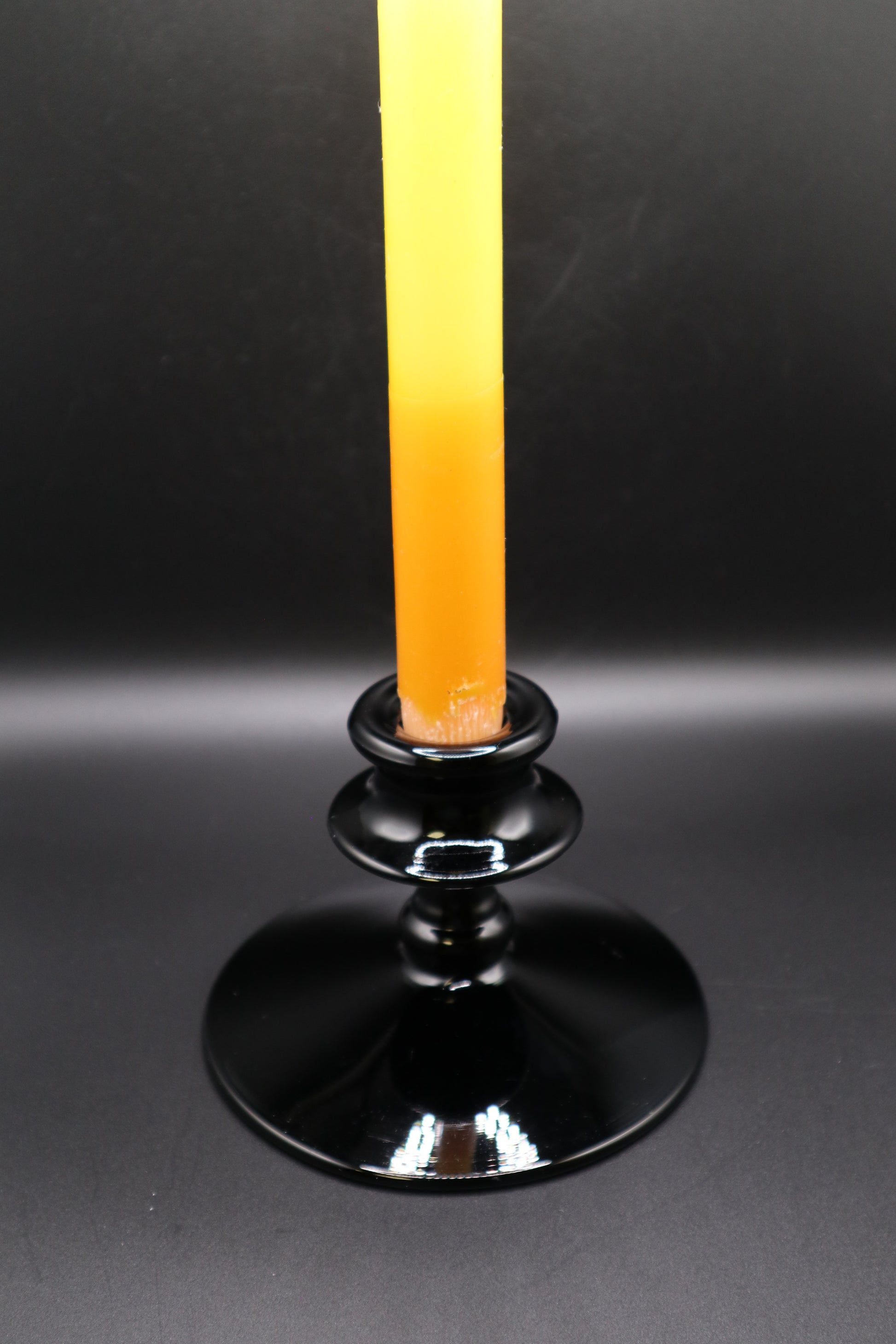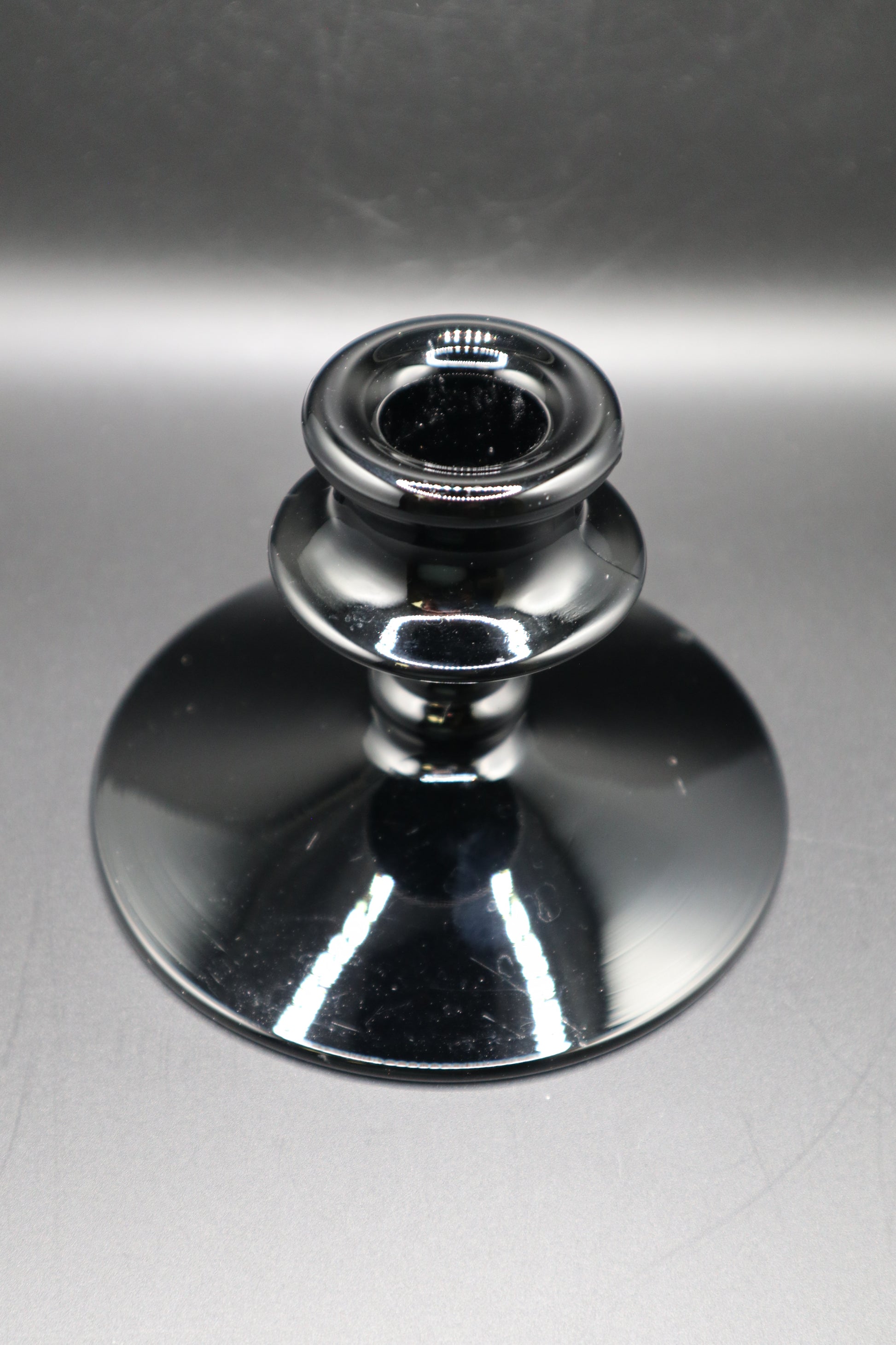VINTAGE BLACK GLASS CANDLESTICK HOLDER