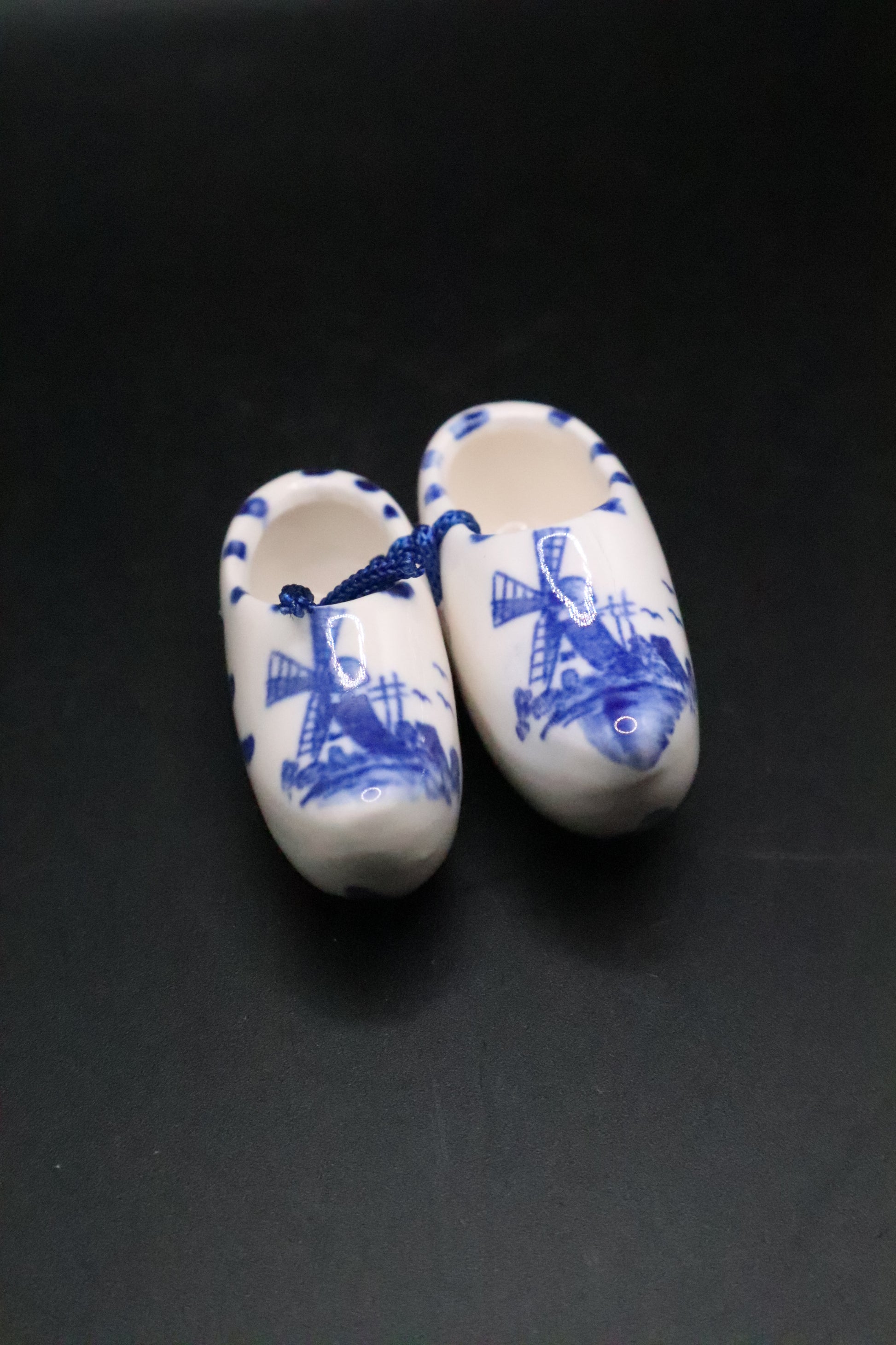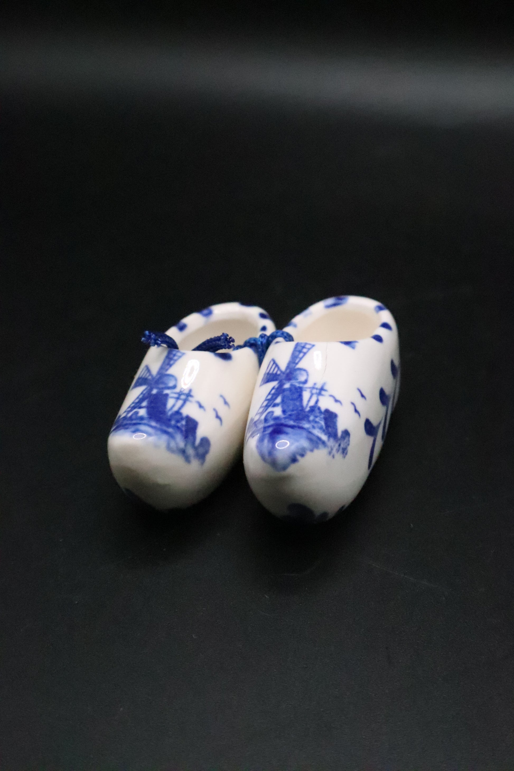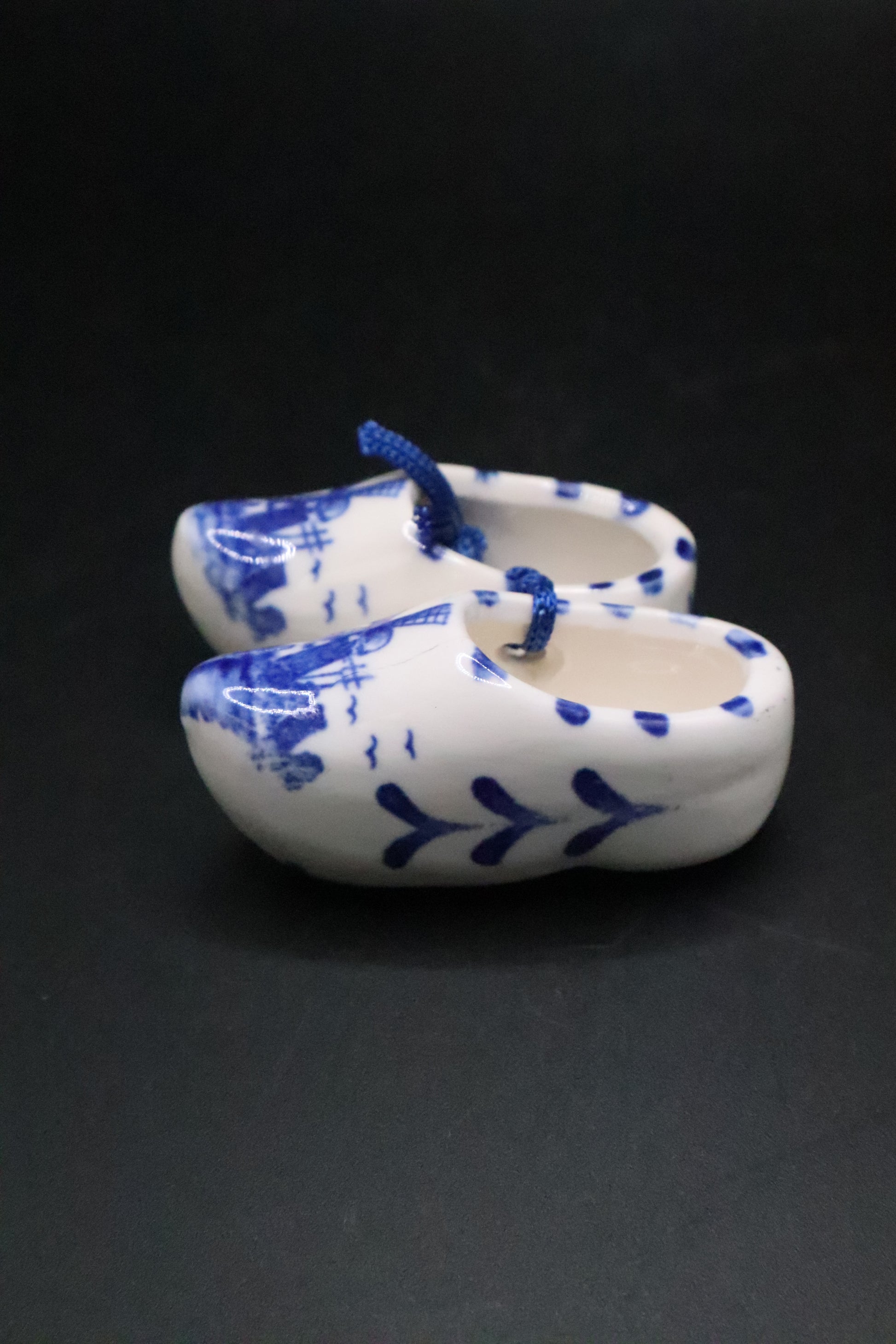 These vintage Delft blue and white porcelain clogs capture the timeless charm of traditional Dutch craftsmanship. Featuring intricate hand-painted blue designs on a glossy white porcelain base, they serve as both decorative collectibles and cultural artifacts. Their delicate artistry makes them ideal for display, adding an authentic touch of European heritage to any collection or interior.
