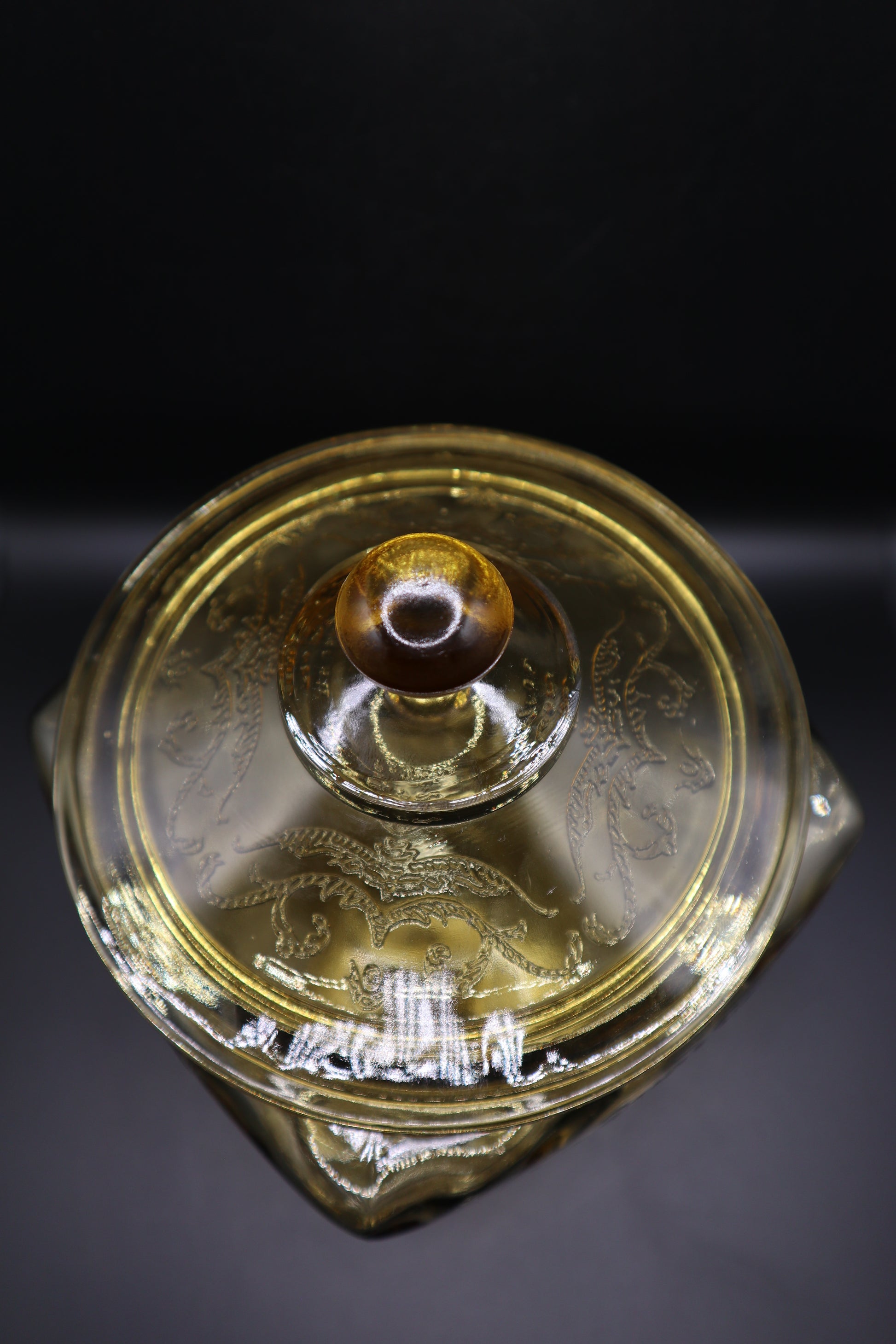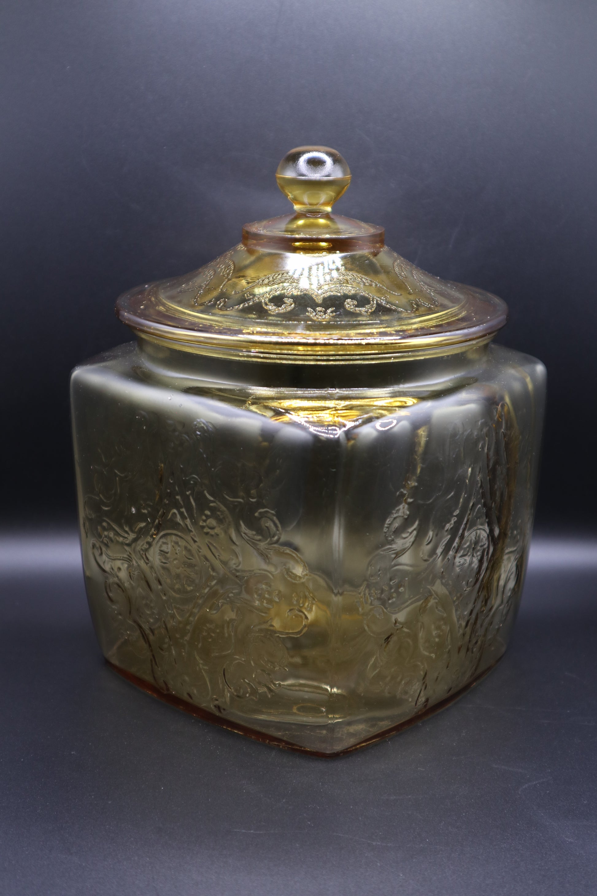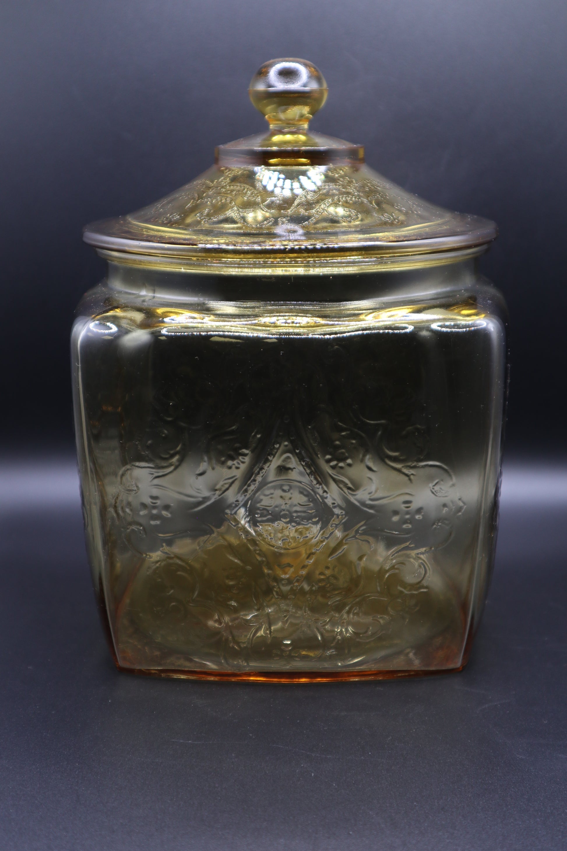 VINTAGE FEDERAL GLASS MADRID AMBER COOKIE JAR & LID