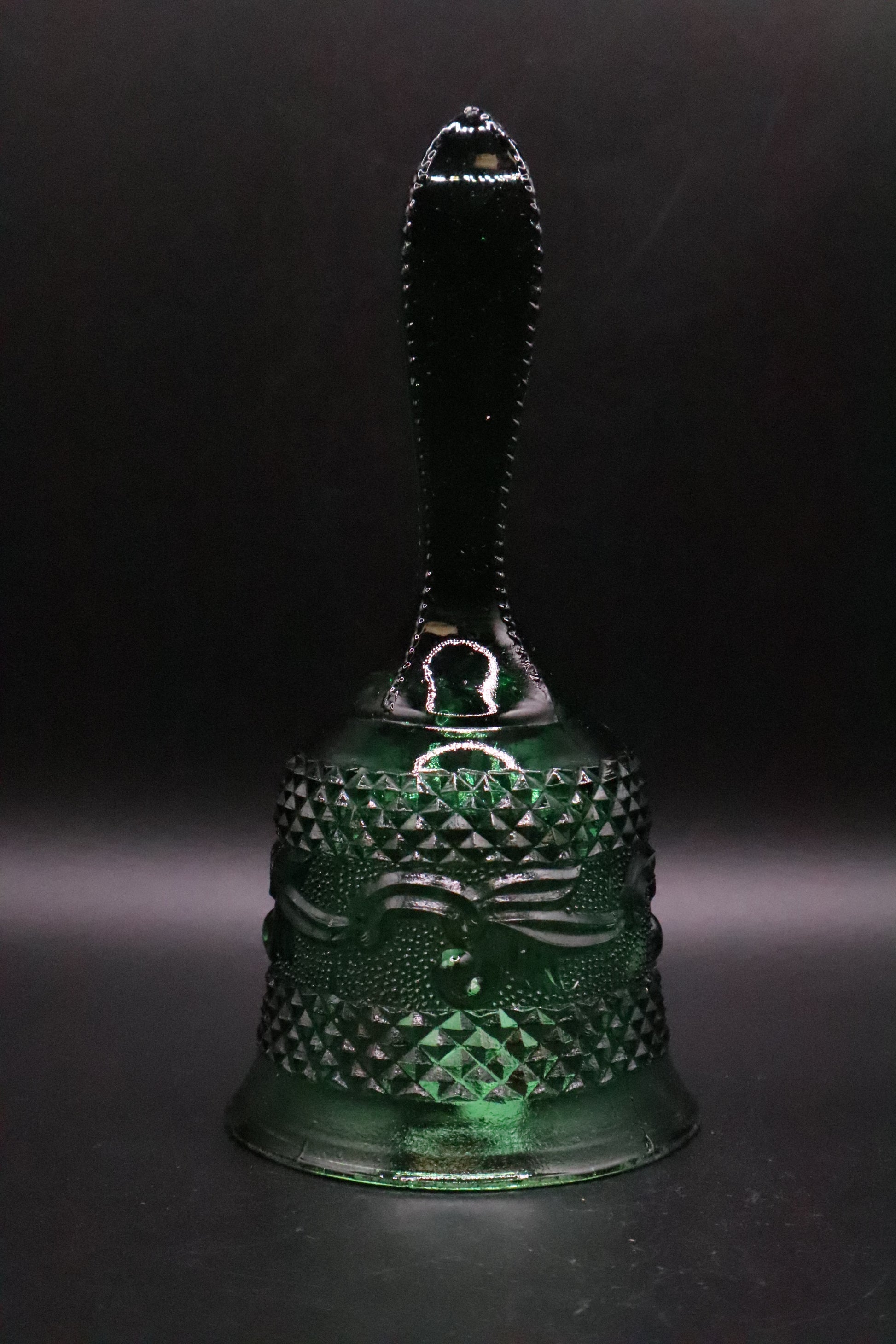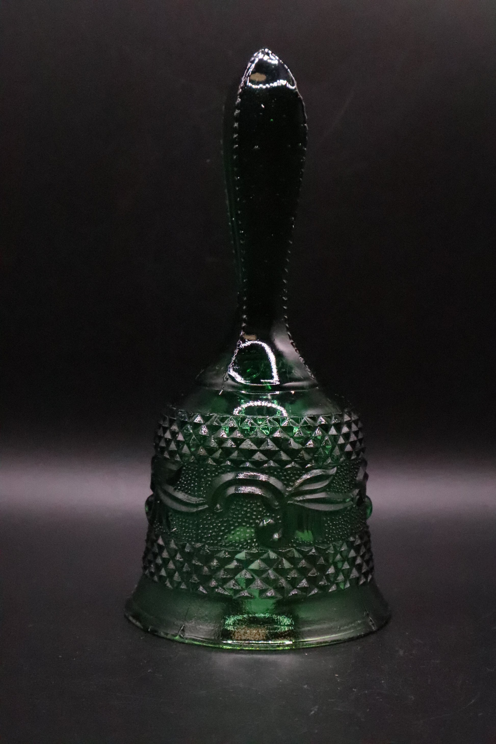 VINTAGE FENTON EMERALD GREEN DIAMOND POINT AND SCROLLS BELL