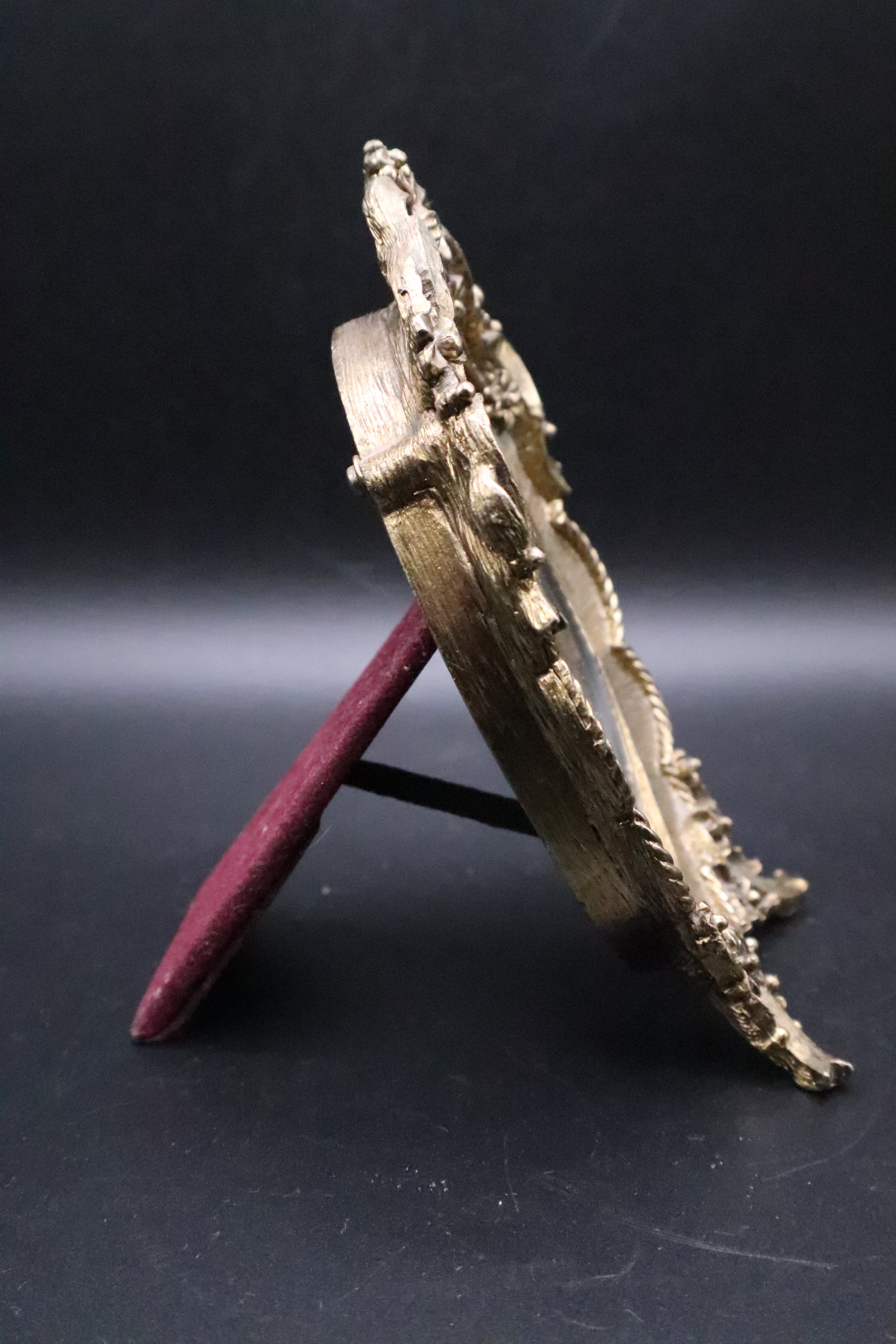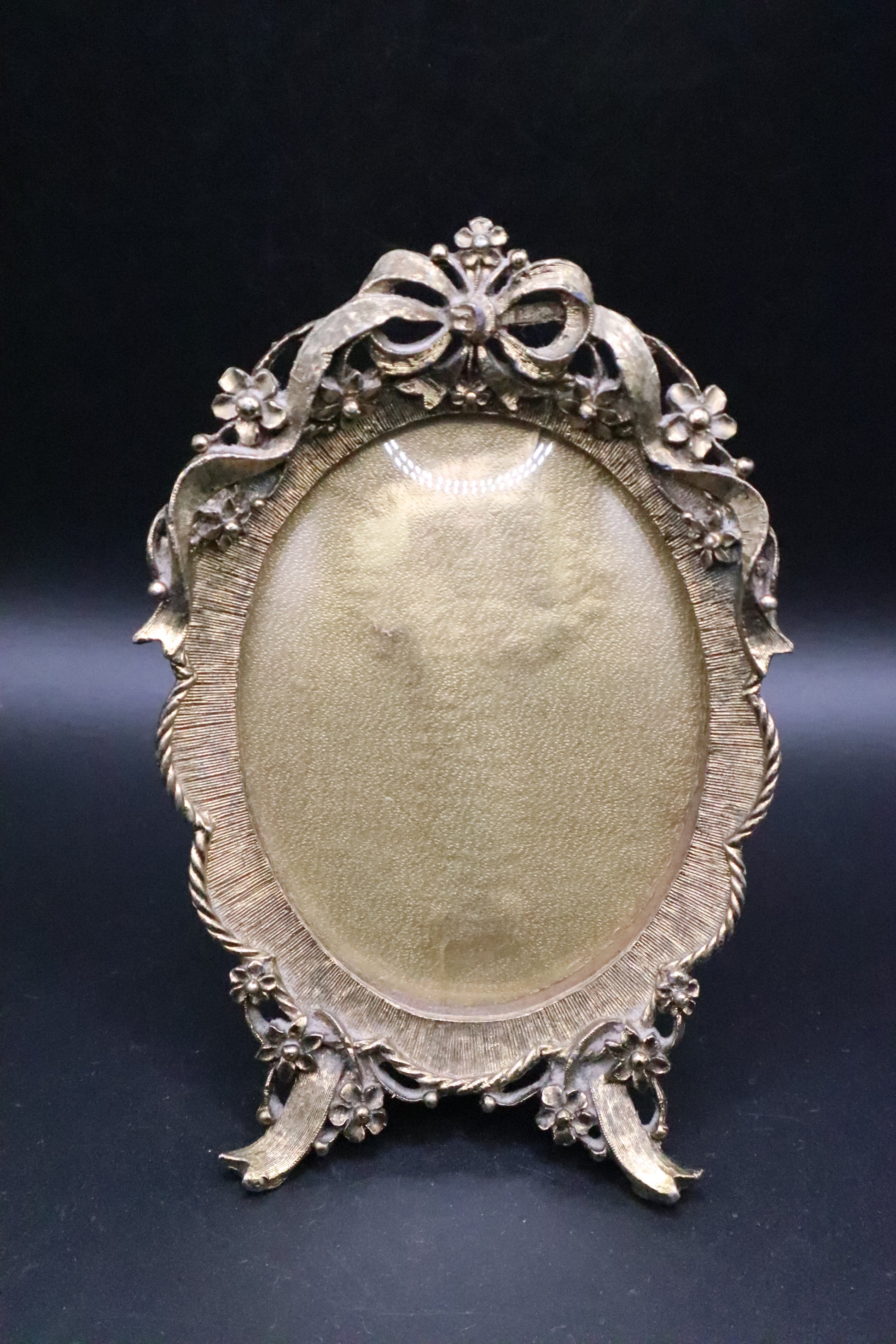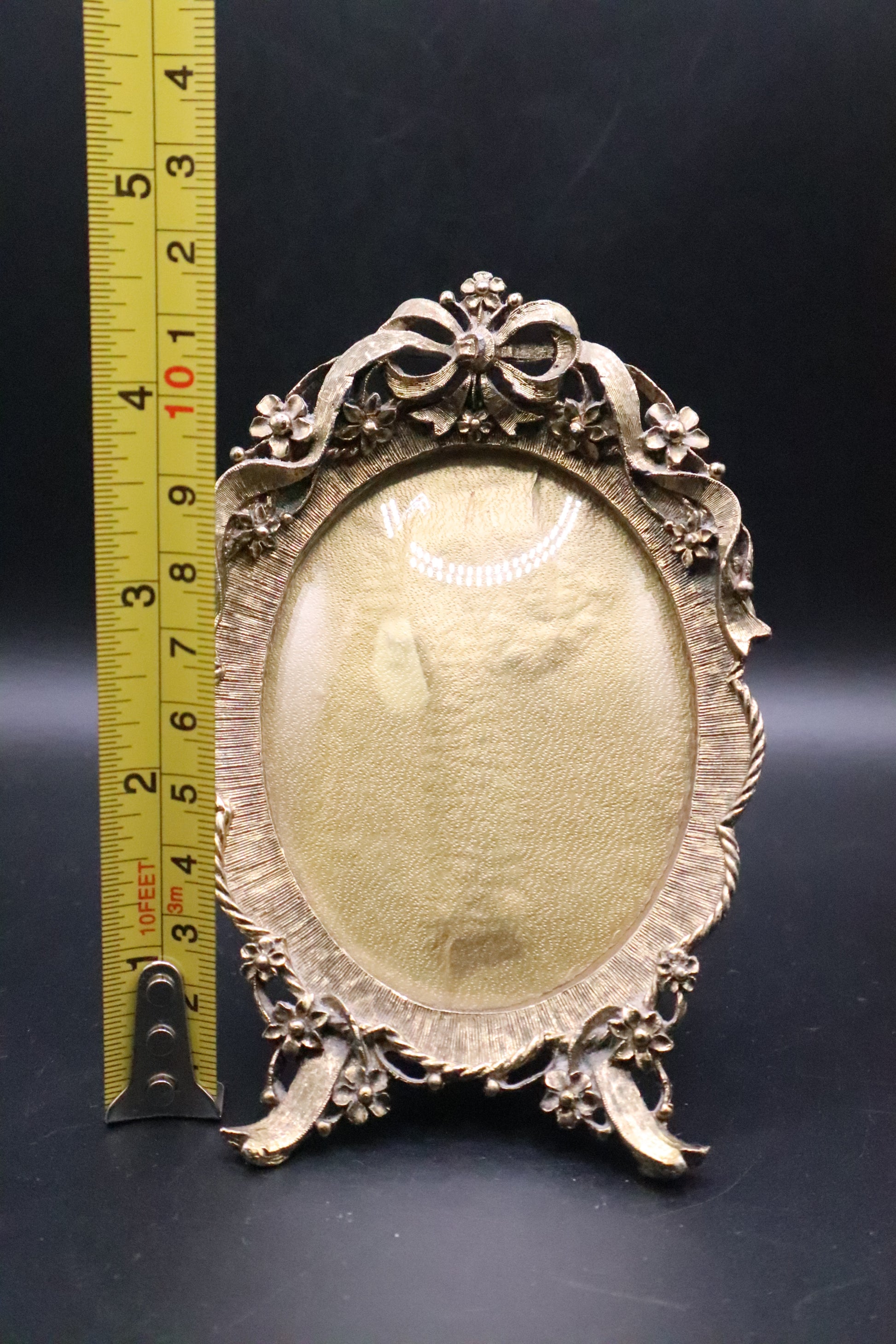 This vintage gold-plated oval frame offers a timeless way to showcase cherished photos or small keepsakes. Its classic oval shape and rich gold finish add a touch of elegance and warmth to any desk or mantel. Crafted with careful attention to detail, this small frame is perfect for highlighting treasured memories in a refined, understated style. Ideal for collectors or those seeking a distinguished vintage accent.