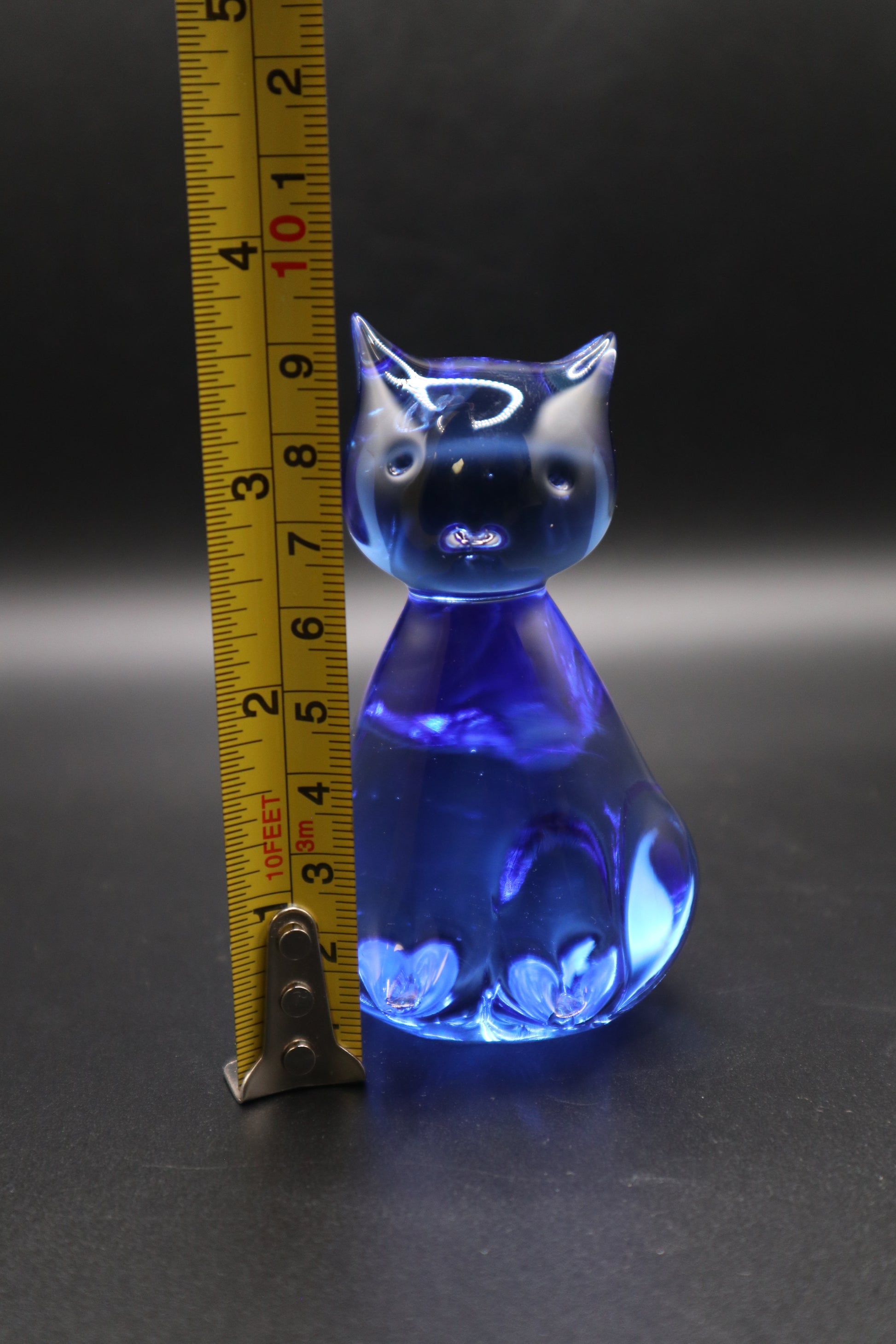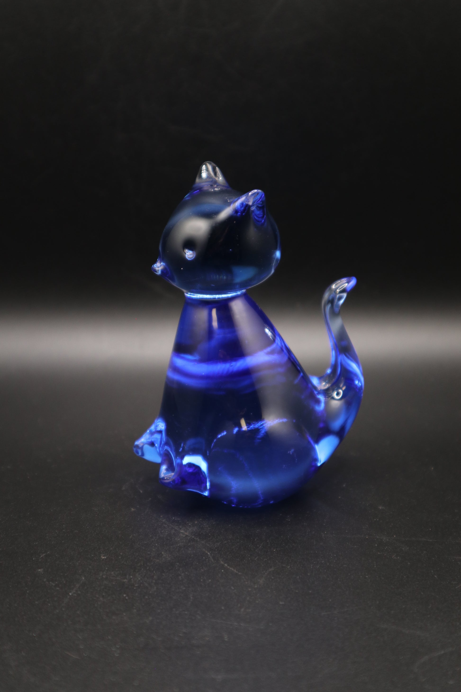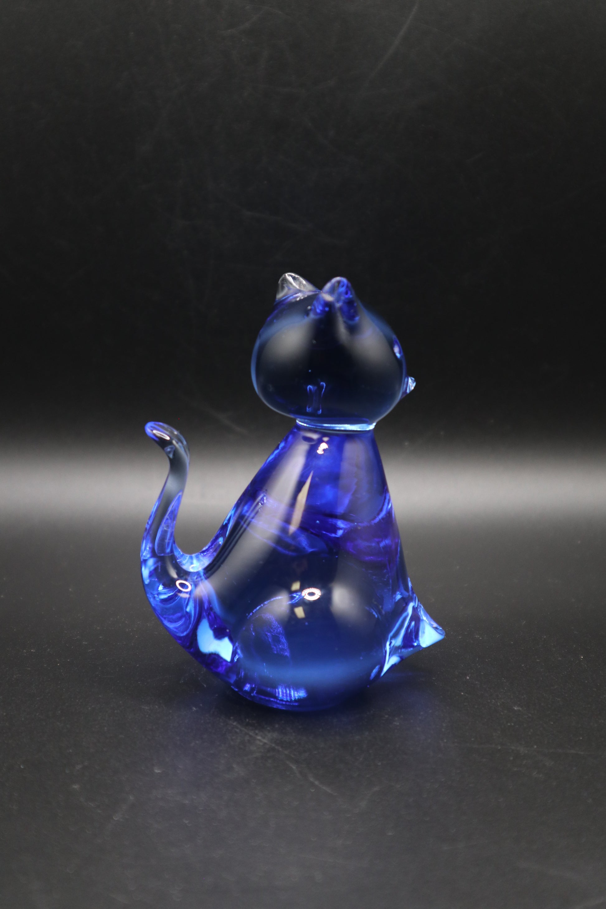 VINTAGE HAND BLOWN COBALT BLUE ART GLASS SMALL CAT