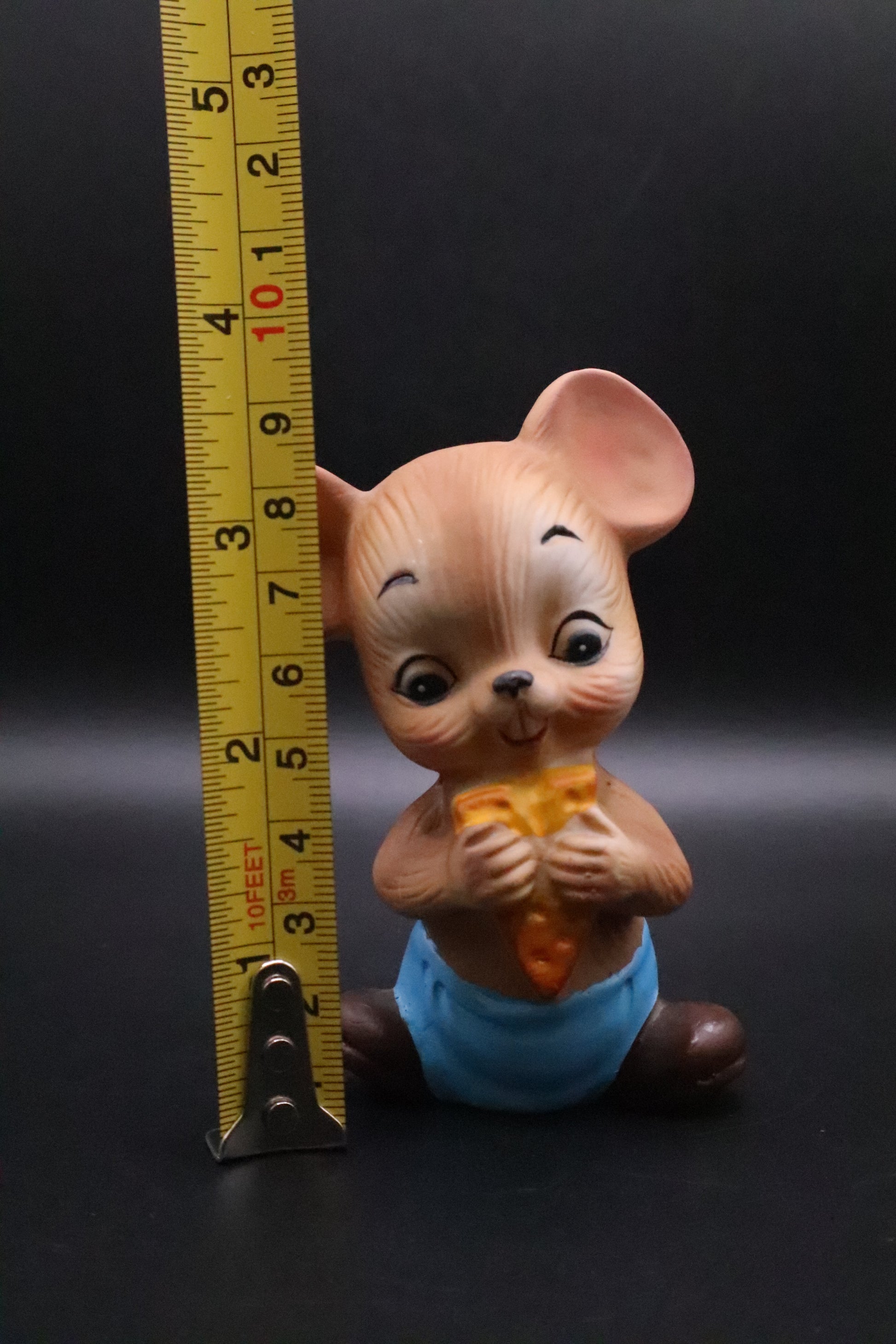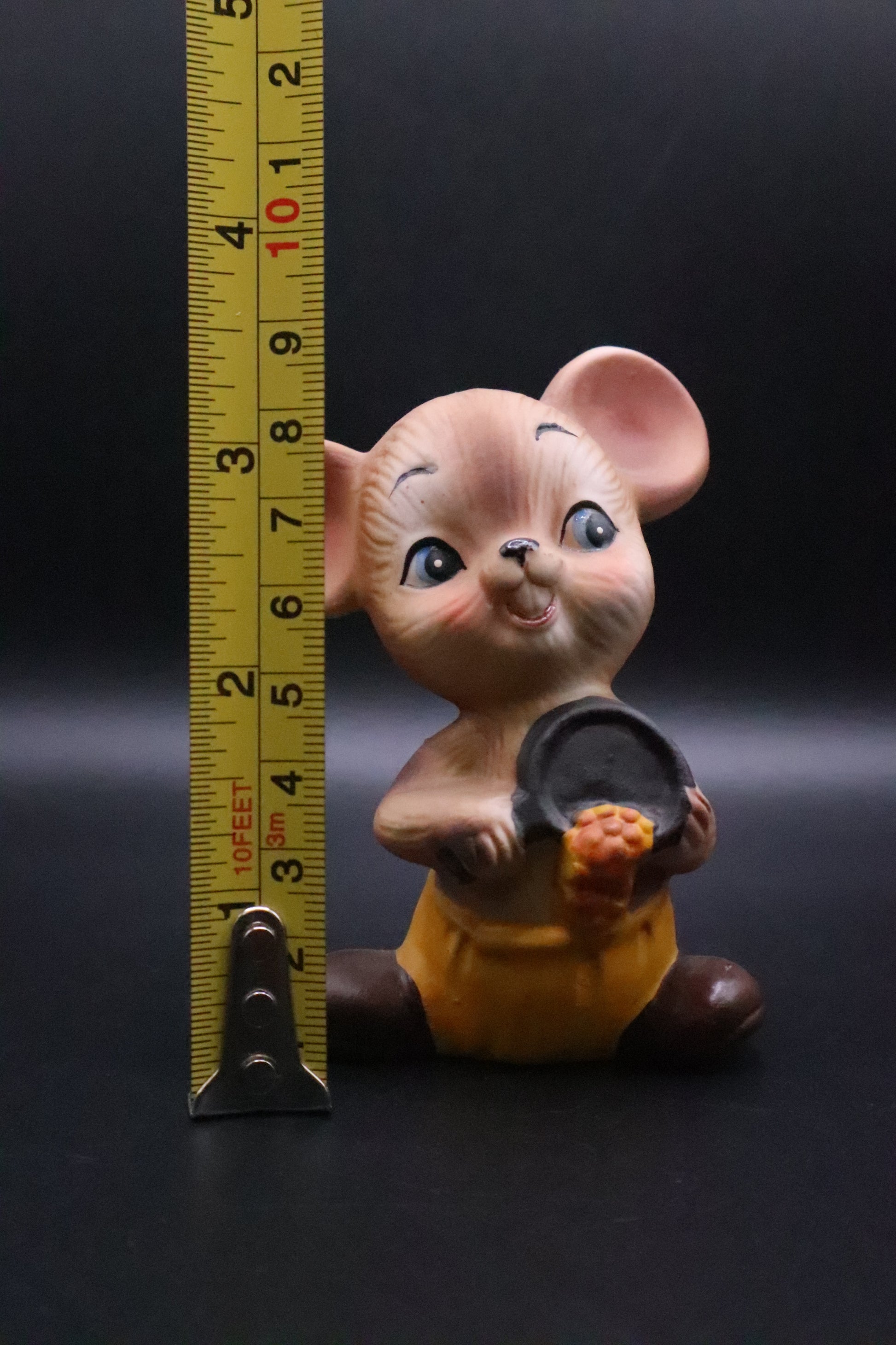 This charming vintage Lefton set features three adorable ceramic mice figurines, each with its own delightful accessory. One mouse clutches a wedge of cheese, another holds a tiny cooking pan, and the third carries a miniature cookbook. Crafted with Lefton's signature attention to detail, these whimsical pieces showcase the quality and character that made mid-century collectibles so beloved. Perfect for display on a shelf, kitchen windowsill, or as part of a curated vintage collection. A delightful conversation starter that captures the playful spirit of classic Lefton design.