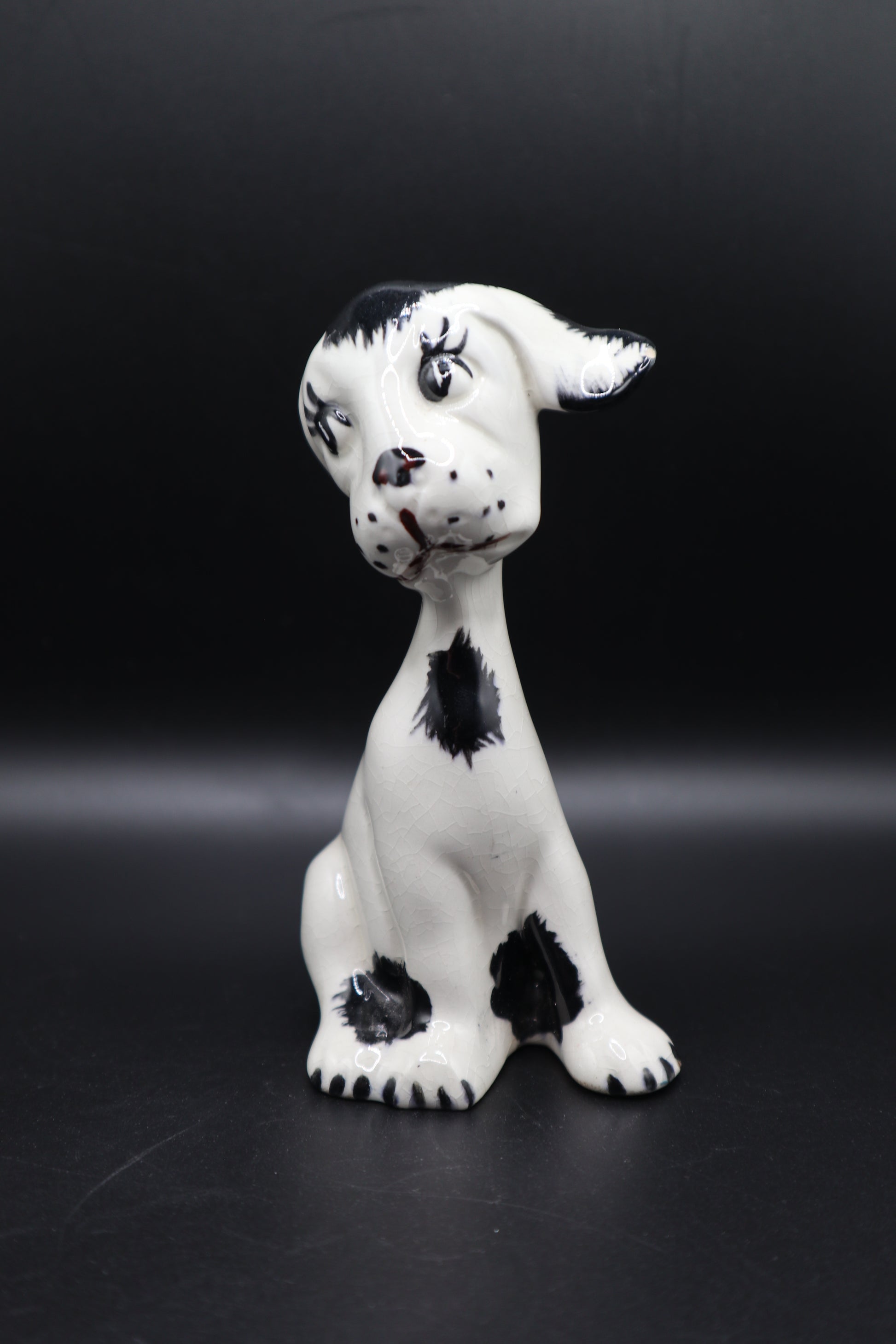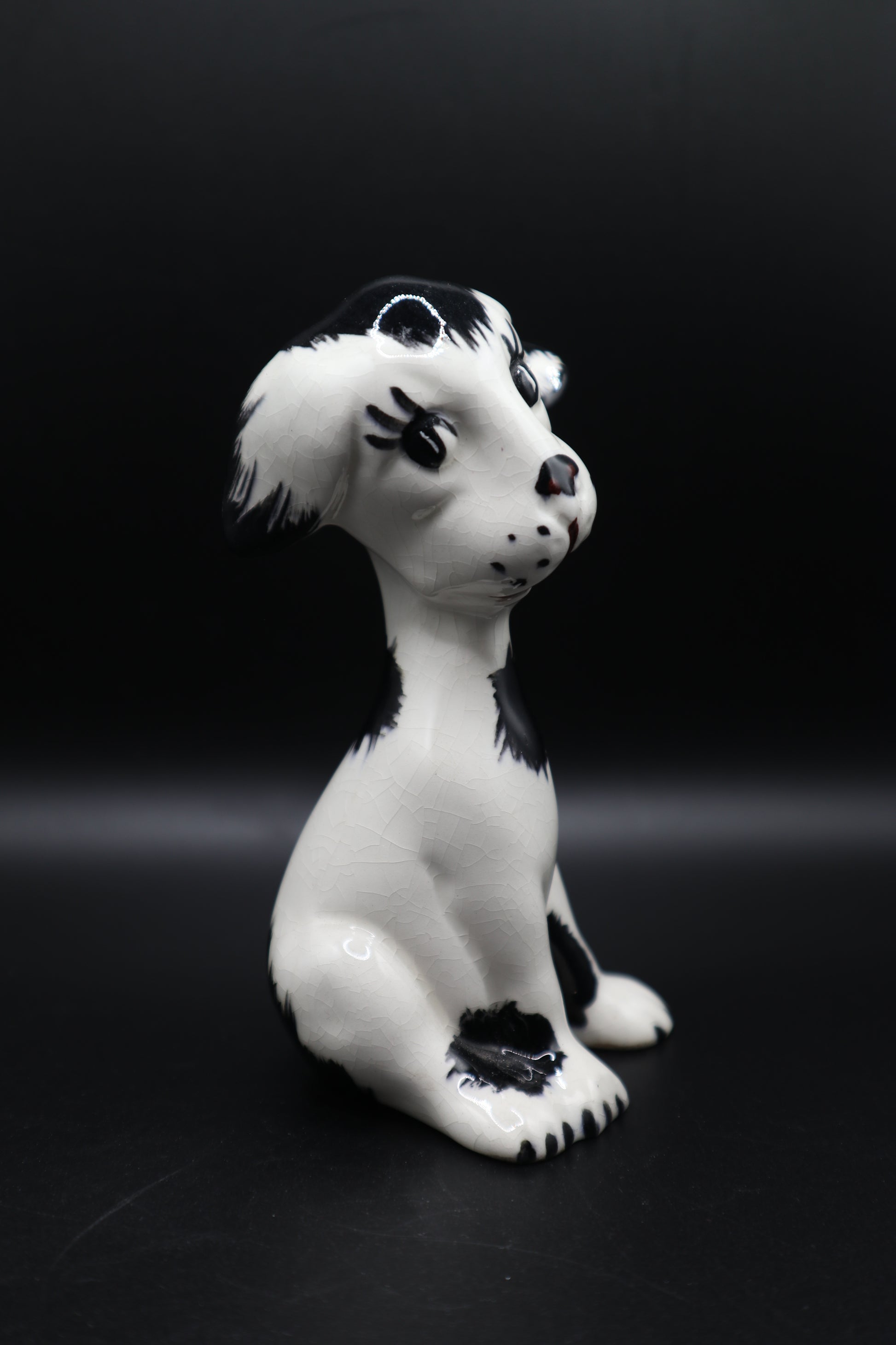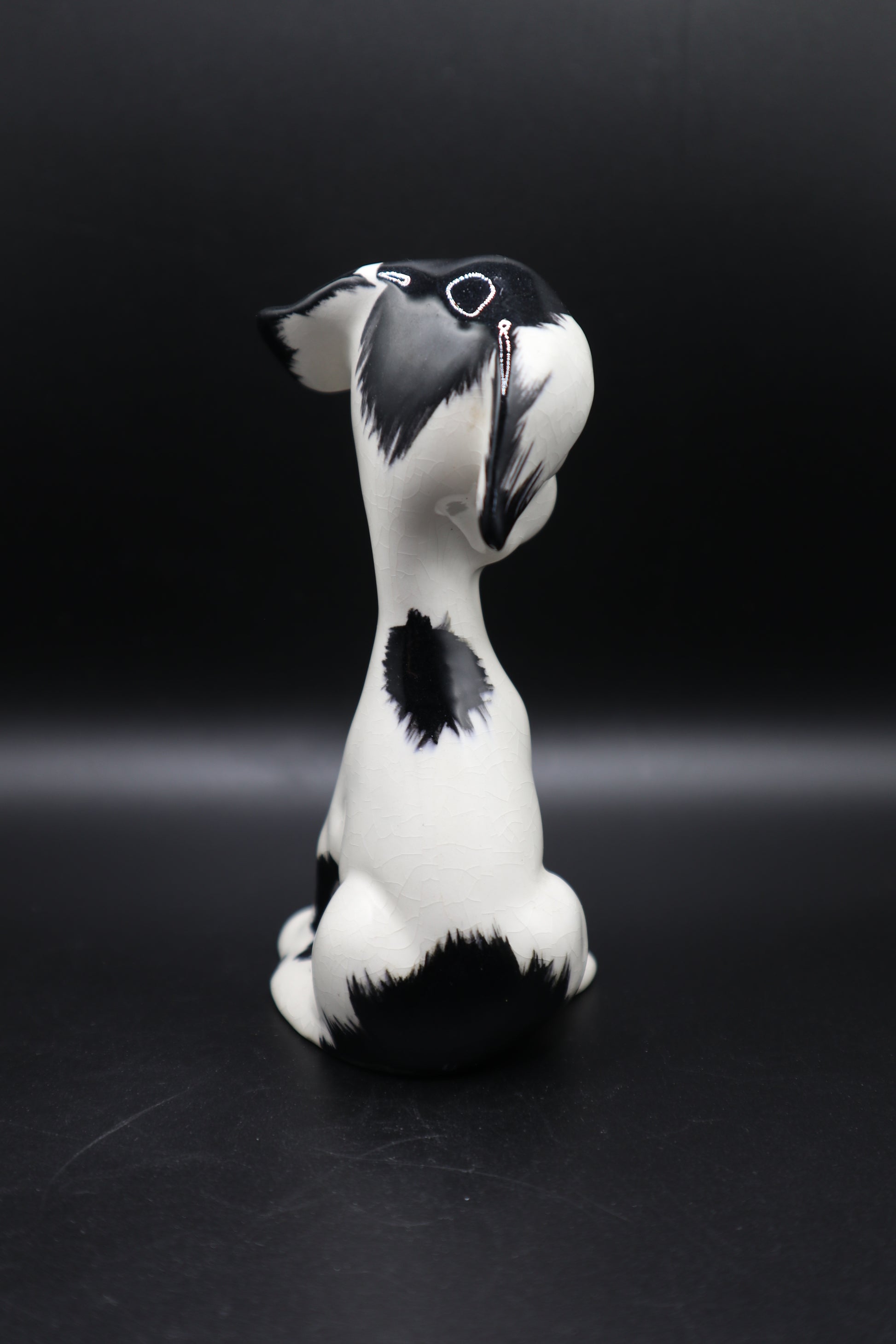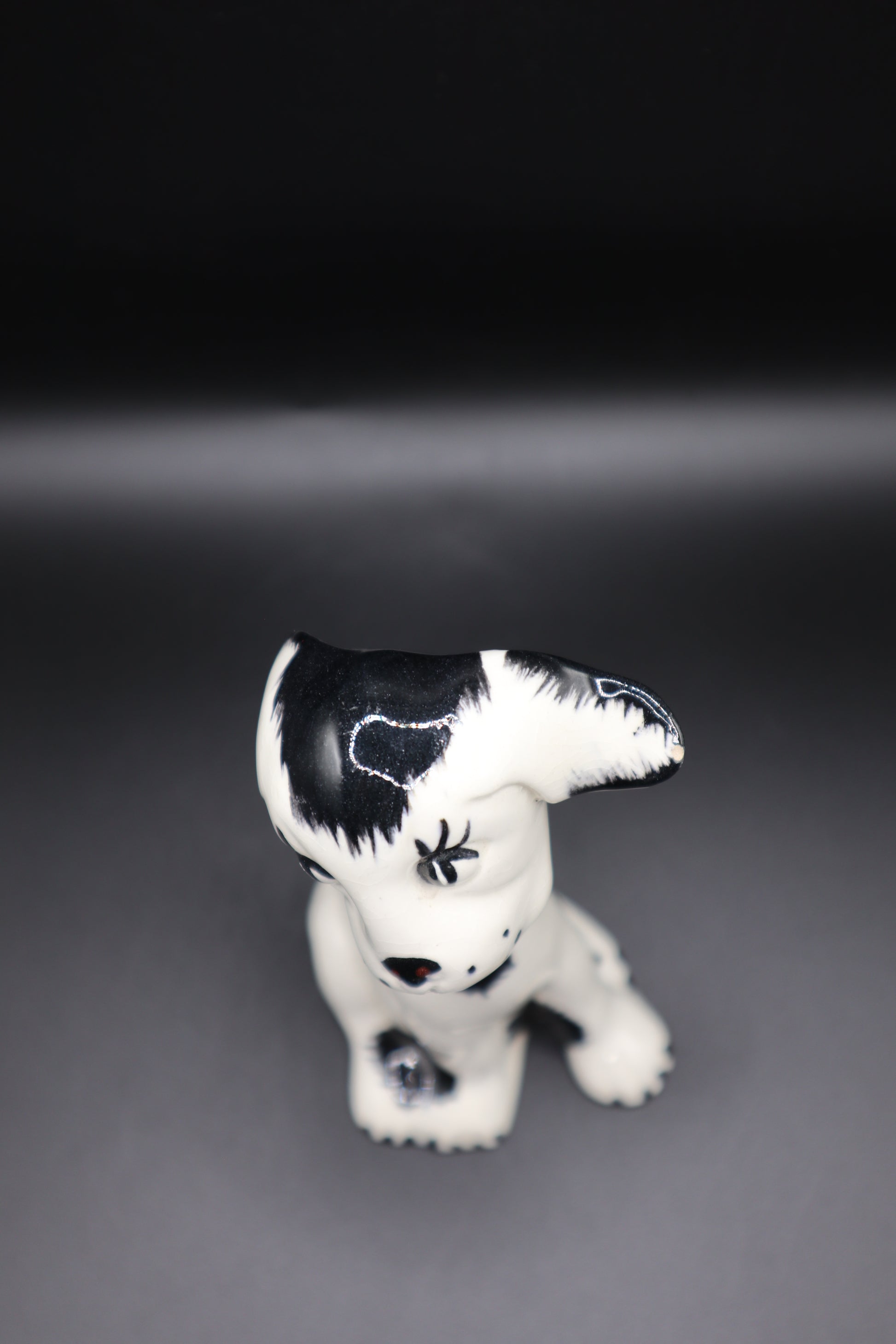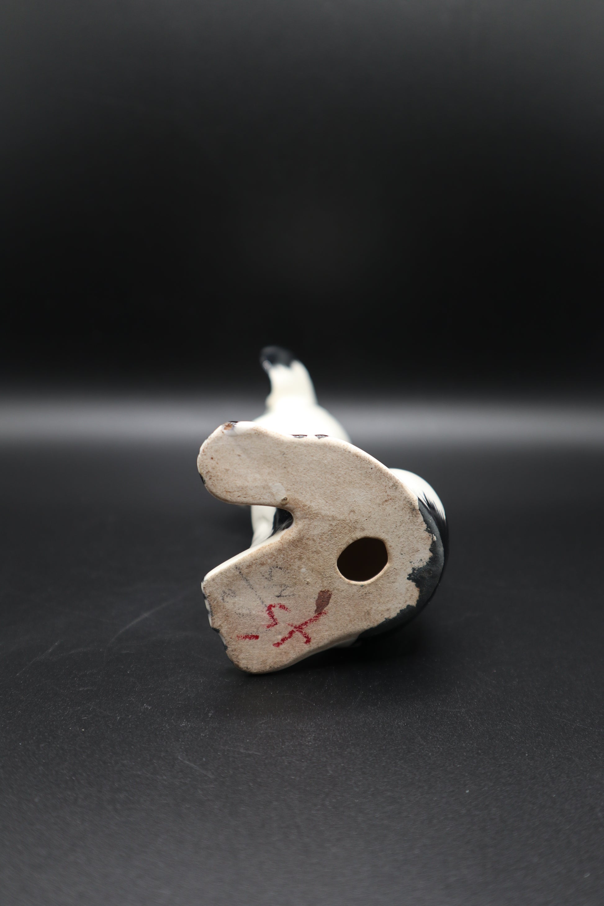 This vintage Robert Simmons dog figurine captures the charm of a black and white dog with remarkable detail. Crafted with expert precision, it reflects the artistry and character signature to Simmons’ work, making it a distinguished piece for collectors and enthusiasts of fine animal sculptures. Its timeless appeal enhances any antique collection or display.