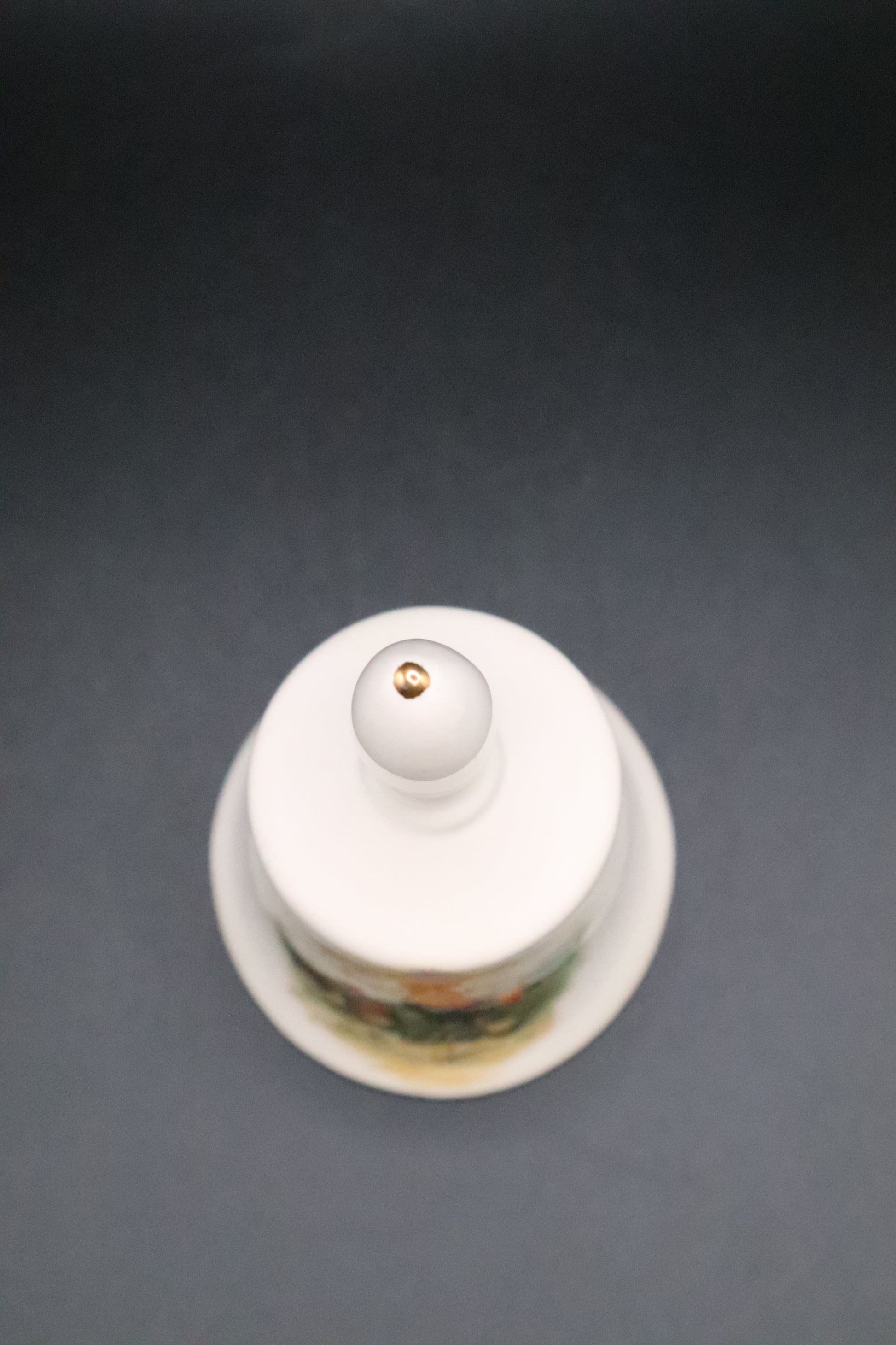 This charming vintage porcelain bell features a detailed rooster design inspired by "The Passion Play" theme. Crafted with fine porcelain work, the piece showcases traditional artistry characteristic of collectible decorative bells from earlier decades. The rooster motif is rendered with careful attention to plumage detail and vibrant glazing. A functional clapper produces a clear, pleasant chime. Perfect for collectors of vintage porcelain, religious-themed décor, or those who appreciate folk art traditions. An excellent addition to a curated collection or display shelf.