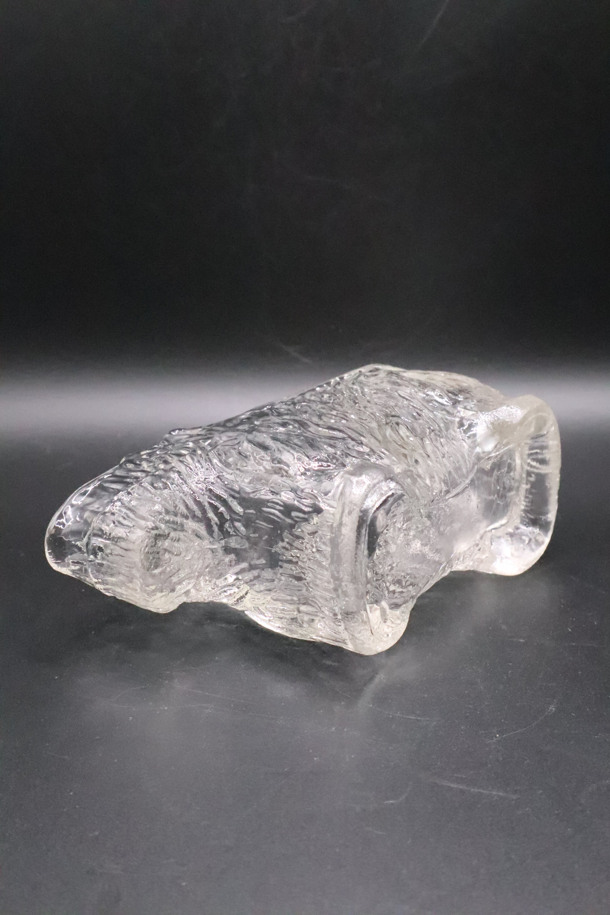 This charming vintage creamer features a delightful Scottie dog design molded into clear glass, capturing the whimsical appeal of mid-century tableware. The sturdy glass construction showcases fine detail work, with the iconic terrier silhouette serving as both functional handle and decorative accent. Perfect for serving cream at the table or displaying as a collectible piece, this creamer reflects the playful aesthetic that made animal-themed glassware a beloved staple of vintage kitchens. An excellent addition for collectors of Depression-era glass, dog enthusiasts, or anyone seeking authentic vintage charm with practical appeal.