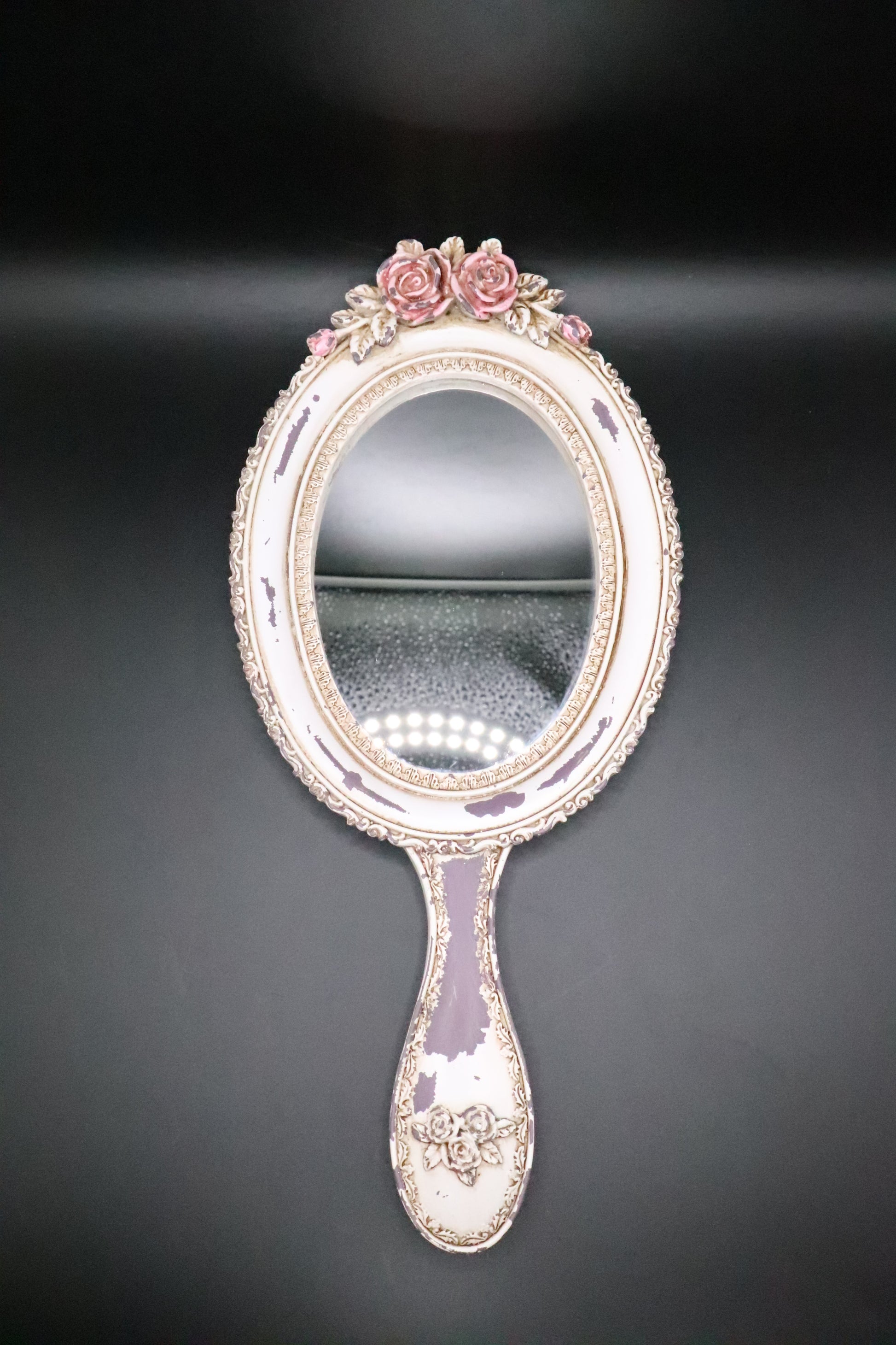 VINTAGE VANITY ROSE DESIGN HAND HELD MIRROR